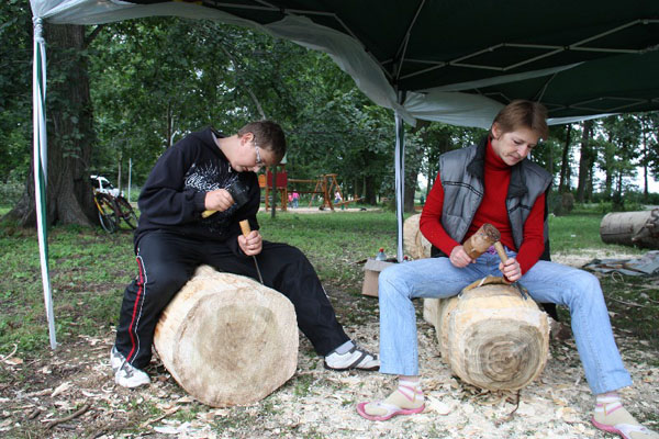 Odwiedzający mogli obserwować jak rzeźbiarze Pani Marianna Iwińska, córka Zdzisława Staszaka, Pan Piotr Staszak, Pan Marek Kwiatosiński, Pan Mariusz Markiewicz oraz Pan Tomasz Ciemniewski (młody adept sztuki rzeźbiarskiej) wprawnymi ruchami za pomocą tradycyjnych narzędzi i technologii stosowanych od pokoleń, wydobywają z kawałka drewna piękny kształt. Podstawowym surowcem było świeżo ścięte, mokre, nie wysuszone drewno lipy. Rzeźby - postacie z bajek, które powstały podczas pleneru, będą zdobić brudzewski skwerek w którym mieści się nowo wybudowany plac zabaw.