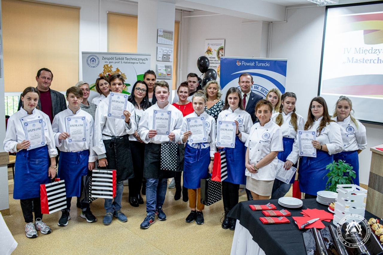 W dniu 19.10.2021 r. w Zespole Szkół Technicznych w Turku odbył się IV Międzyszkolny Konkurs „MASTERCHEF PO NIEMIECKU". W przedsięwzięciu wzięli udział uczniowie Szkoły Podstawowej nr 4 w Turku, uczniowie Zespołu Szkół w Przykonie oraz uczniowie klasy trzeciej ZST kształcący się w zawodzie technik żywienia i usług gastronomicznych. Celem konkursu było wzbogacenie niemieckiego słownictwa dotyczącego kulinariów oraz rozpowszechnienie potraw kuchni naszych sąsiadów. Goście zostali serdecznie powitani przez panią wicedyrektor ZST Anetę Kurzawę. Spotkanie rozpoczęło się pysznym poczęstunkiem, przygotowanym przez uczniów klas gastronomicznych.
