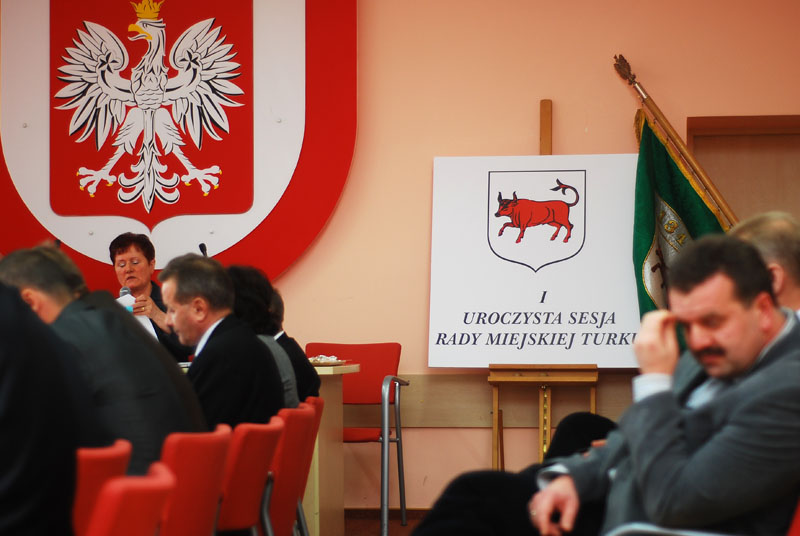9 grudnia, po raz pierwszy w trakcie trwania nowej kadencji, na uroczystej sesji spotkali się wybrani przez mieszkańców Turku przedstawiciele Rady Miasta. Po uroczystym zaprzysiężeniu wszystkich członków, w wyniku tajnego głosowania, spośród dwójki wytypowanych kandydatów, na przewodniczącego Rady został wybrany Marek Pańczyk (RiP) otrzymując 11 głosów. Pokonał on tym samym Kornelę Józefiak z wynikiem 7 głosów (TS). Wiceprzewodniczącymi zostali Joanna Maciejewska (SLD) oraz Dariusz Kowalczyk (PO) uzyskując po 11 głosów. Wstępny termin kolejnej sesji Rady Miejskiej wyznaczono na 14 grudnia, na godzinę 16stą.