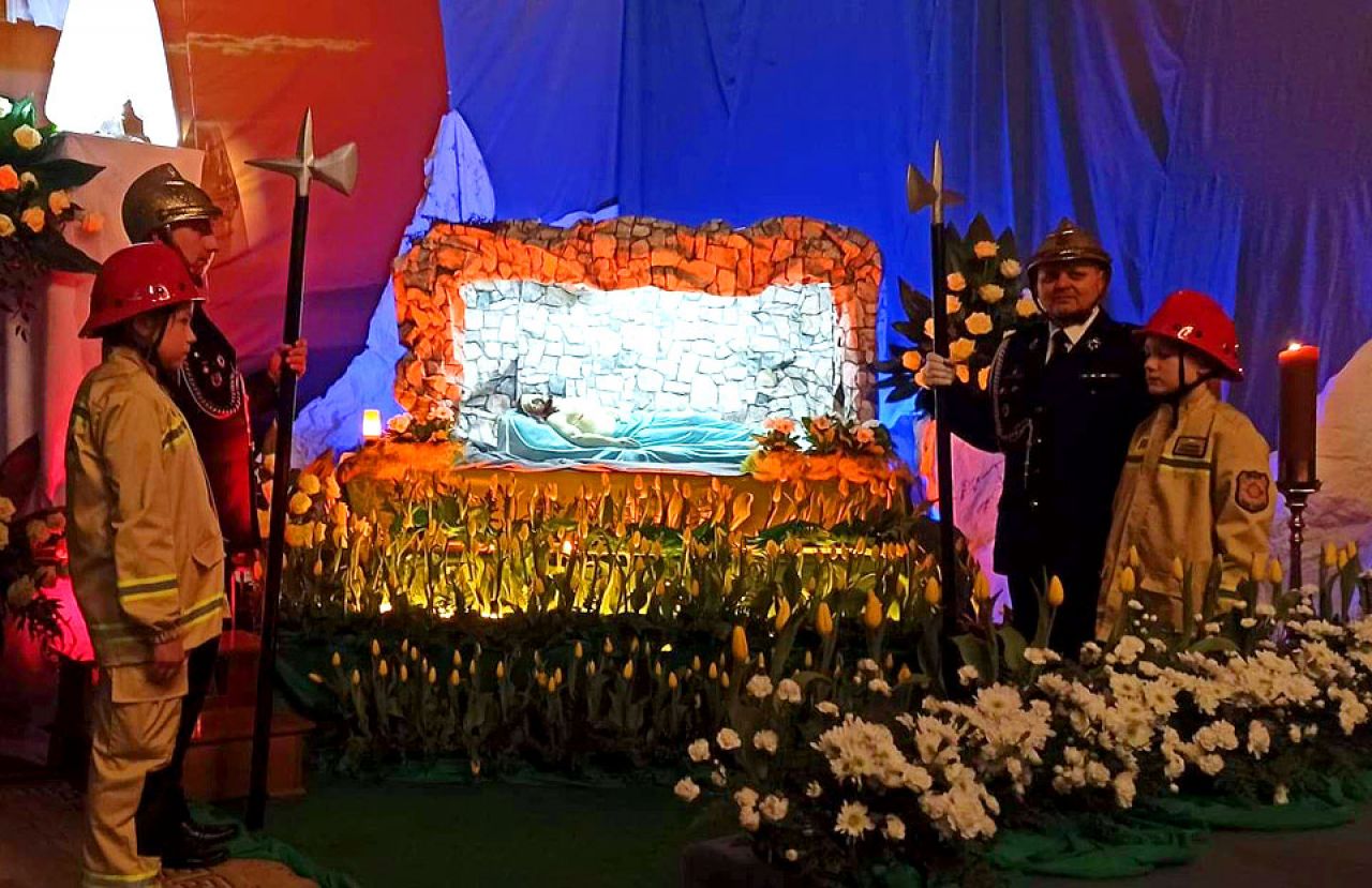 Strażacka warta przy Grobie Pańskim to już wieloletnia tradycja, nawiązująca do pilnowania Grobu Chrystusa przez żołnierzy rzymskich. Zwyczaj zaciągania wart przy Bożym Grobie wywodzi się ze średniowiecza. Tradycja ta wiąże się ze sprowadzeniem Zakonu Kanoników Regularnych Stróżów Świętego Grobu Jerozolimskiego, zwanych Bożogrobcami, z Palestyny do Polski w 1163 roku. To właśnie ten zakon zapoczątkował zwyczaj budowania grobów Chrystusa w Wielkim Tygodniu oraz zaciągania przy nich straży.