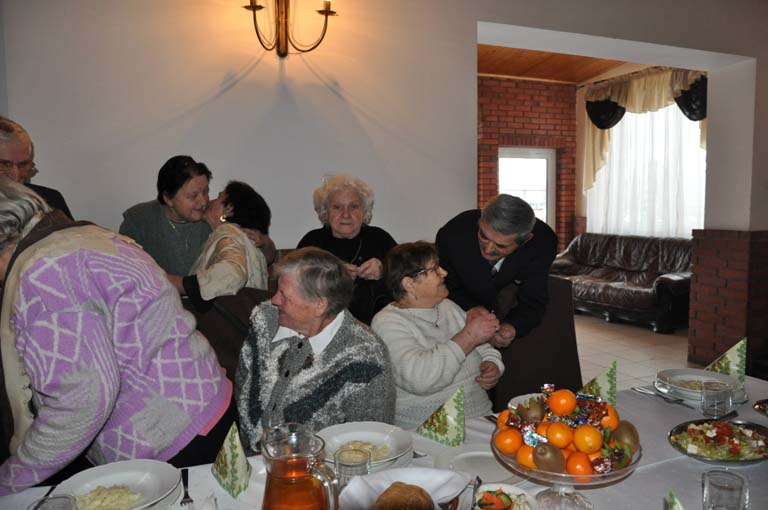 Po części artystycznej nie zabrakło również ciepłych słów i życzeń ze strony Wójta Gminy Przykona - Mirosława Broniszewskiego. Pod przewodnictwem księdza Franciszka Zygadlińskiego została odmówiona wspólna modlitwa, po której nadszedł czas na składanie sobie życzeń i dzielenie się opłatkiem. Następnie wszyscy zasiedli do tradycyjnej wigilijnej kolacji. Nie zabrakło również Świętego Mikołaja, seniorzy uczestniczący w spotkaniu otrzymali mały słodki upominek.