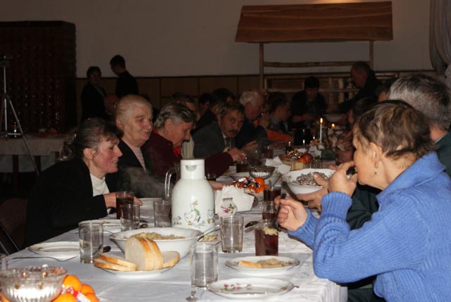 Choć mróz i śnieg nie sprzyjał wędrówkom w poszukiwaniu miejsca przy stole, na zaproszenia odpowiedziało niespełna 100 osób osób, pragnących spotkać się, porozmawiać i spędzić miło czas, a przede wszystkim uczestniczyć w wieczerzy wigilijnej, która być może była jedyną, w jakiej brały udział. W tym dniu wszyscy byli honorowymi gośćmi. Uroczystą kolację poprzedziło odczytanie fragmentu Pisma Świętego i tradycyjne łamanie się opłatkiem, podczas którego wszyscy i wszystkim składali życzenia.