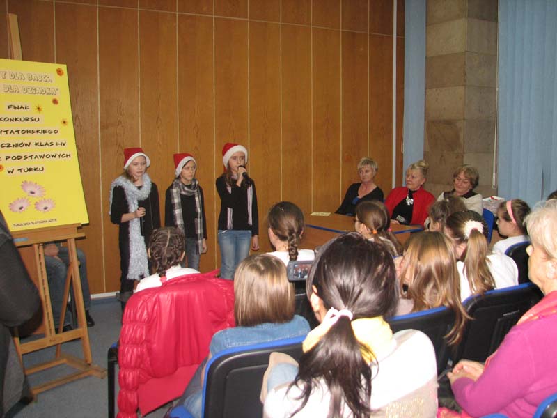 Udział w konkursie wzięli uczniowie klas I – IV turkowskich szkół podstawowych. Po eliminacjach szkolnych, do finału miejskiego w bibliotece, który odbył się dnia 18 stycznia 2011 r, zakwalifikowało się po 4 uczniów z każdej szkoły. Swój warsztat recytatorski prezentowali przed Komisją w składzie: Elżbieta Frasunkiewicz – metodyk Ośrodka Doskonalenia Nauczycieli w Koninie (przewodnicząca) oraz Krystyna Baranowska i Maria Górska - uczestniczki Programu 50+, jak również przed licznie zgromadzoną publicznością, wśród której znaleźli się rodzice, nauczyciele i pozostali seniorzy z Programu 50+. Po wysłuchaniu wierszy w wykonaniu dzieci Jury udało się na naradę, a uczestników spotkania zaproszono na poczęstunek.