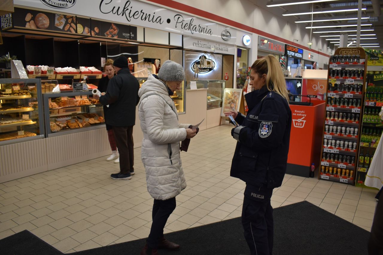 Policjanci z Komendy Powiatowej Policji w Turku prowadzą działania profilaktyczne podczas których przypominają o zachowaniu szczególnej ostrożności podczas przedświątecznych zakupów. Rozdają napotkanym osobom ulotki oraz informują, jakimi metodami posługują się złodzieje kieszonkowi i jak skutecznie się przed ich działaniami zabezpieczyć.