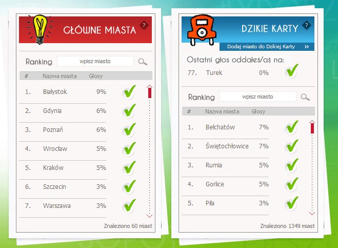 Aby oddać swój głos wystarczy wejść na stronę www.monopoly.pl/ranking, a następnie się zarejestrować. Głosować można również poprzez swoje konto na Facebooku. Należy pamiętać, że można oddać jeden głos dziennie. Swojego poparcia można udzielić miastu z listy głównej oraz tzw. „Dzikiej Karcie”, gdzie znajduje się Turek (w chwili pisania tych słów jest on na 77 pozycji). Do gry wejdzie 20 miast z listy głównej oraz 2 z „Dzikiej Karty”.