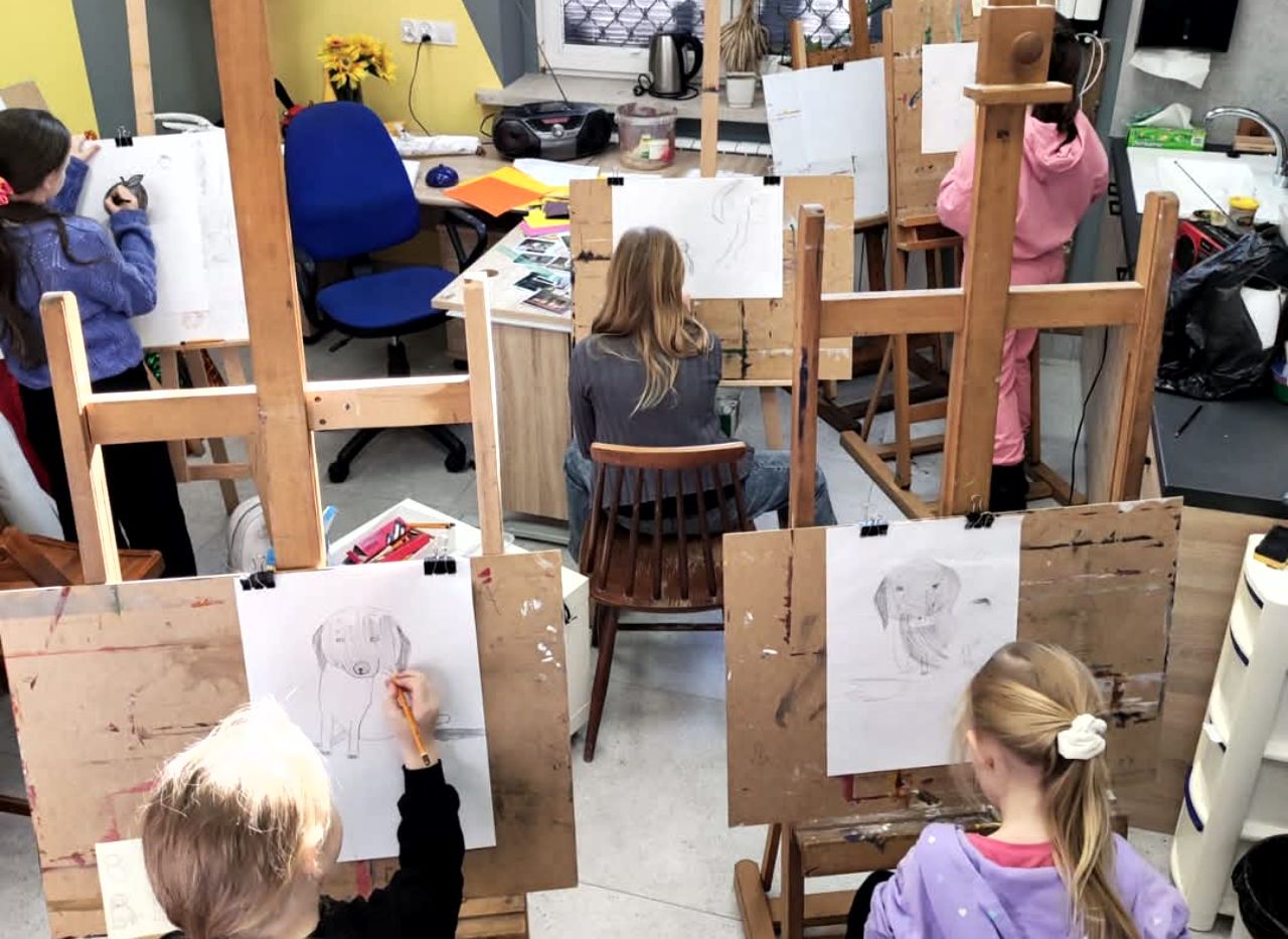 Pierwszy dzień ferii upłynął pod znakiem kreatywności. Uczestnicy warsztatów rysunku i malarstwa mieli okazję wyrazić swoje artystyczne pasje, tworząc prace w profesjonalnej pracowni plastycznej. Sztalugi i palety z farbami wypełniły przestrzeń MDK, a dzieci, pod okiem instruktorki Katarzyny Cieślak, z entuzjazmem oddawały się swojej twórczości.