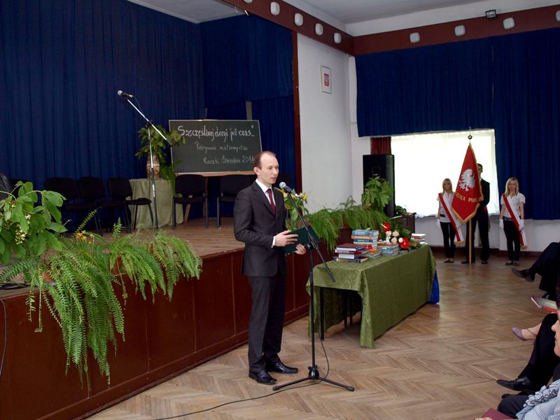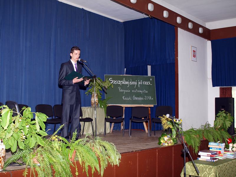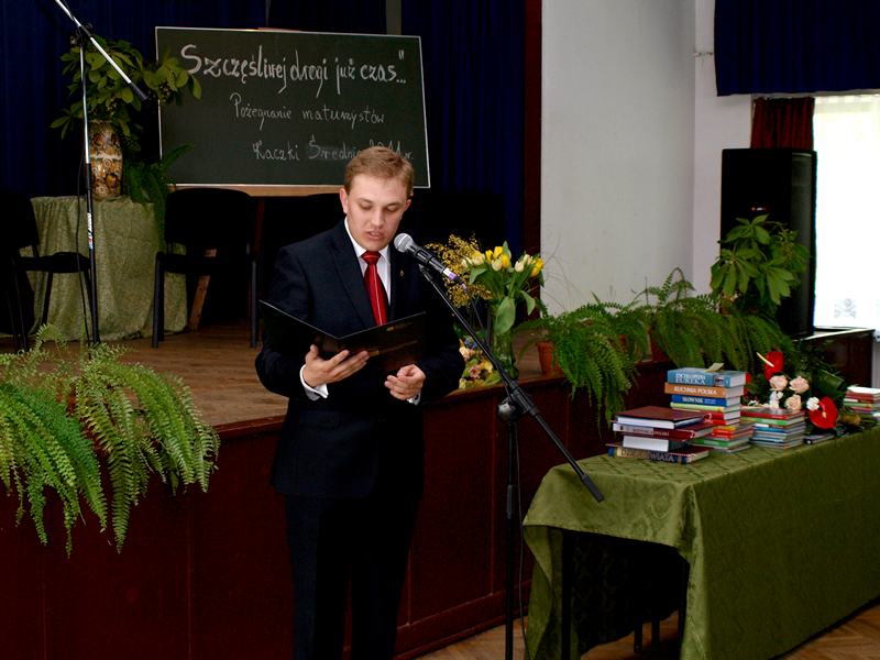 Dyrektor szkoły, Sławomir Kosobudzki, powitał przybyłych na tę uroczystość absolwentów, ich rodziców i zaproszonych gości, a wśród nich Dariusza Młynarczyka – starostę tureckiego, Mirosława Mękarskiego – wiceburmistrza Turku, Karola Maca – przewodniczącego Rady gminy Turek oraz Karola Mikołajczyka – wójta gminy Turek, a zarazem byłego dyrektora szkoły w Kaczkach.