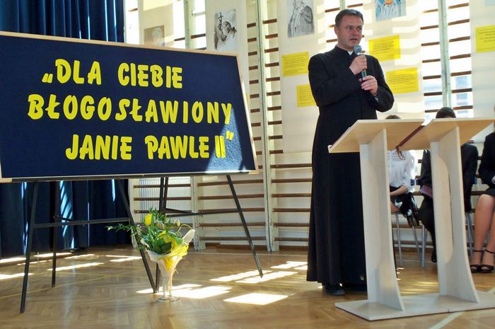 Najpiękniejsze utwory zostały zaprezentowane w montażu słowno-muzycznym, poświęconym Naszemu Papieżowi, będą one również wysłane do redakcji czasopism katolickich, w celu ich opublikowania. Pięknie udekorowana sala w kolorach papieskich, rozwieszone plakaty z wizerunkiem Naszego Ojca Świętego wykonane przez uczniów, wystawa o tematyce dotyczącej Jego życia nadawały niesamowity, odświętny klimat.