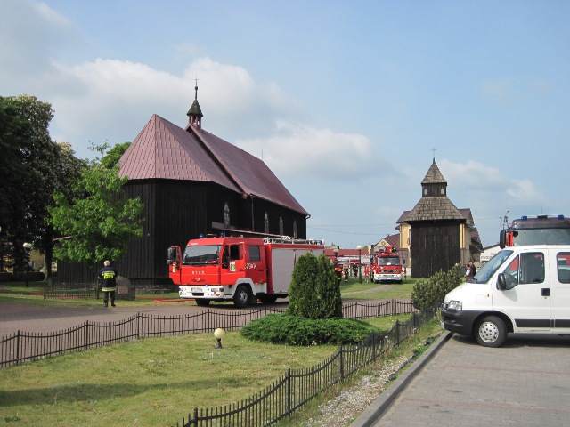 W działaniach udział brały 3 zastępy PSP i dwa zastępy OSP. Założenie do ćwiczeń przewidywało powstanie pożaru wewnątrz kościoła a następnie rozprzestrzenienie się na dach. Podczas ćwiczeń doskonalono taktykę działań gaśniczych, sprawdzono możliwości techniczne sprzętu oraz drogi pożarowe i zaopatrzenie wodne.