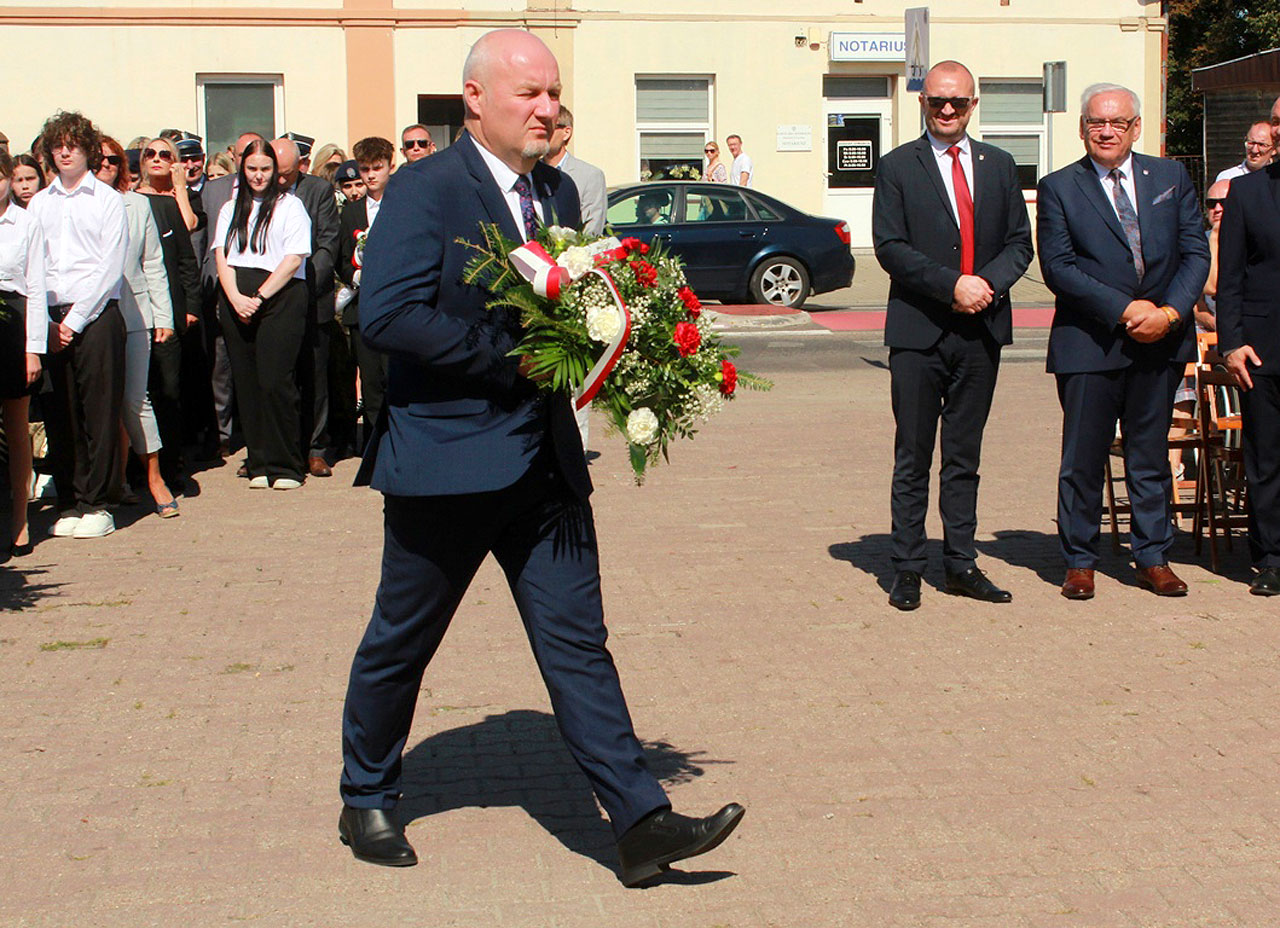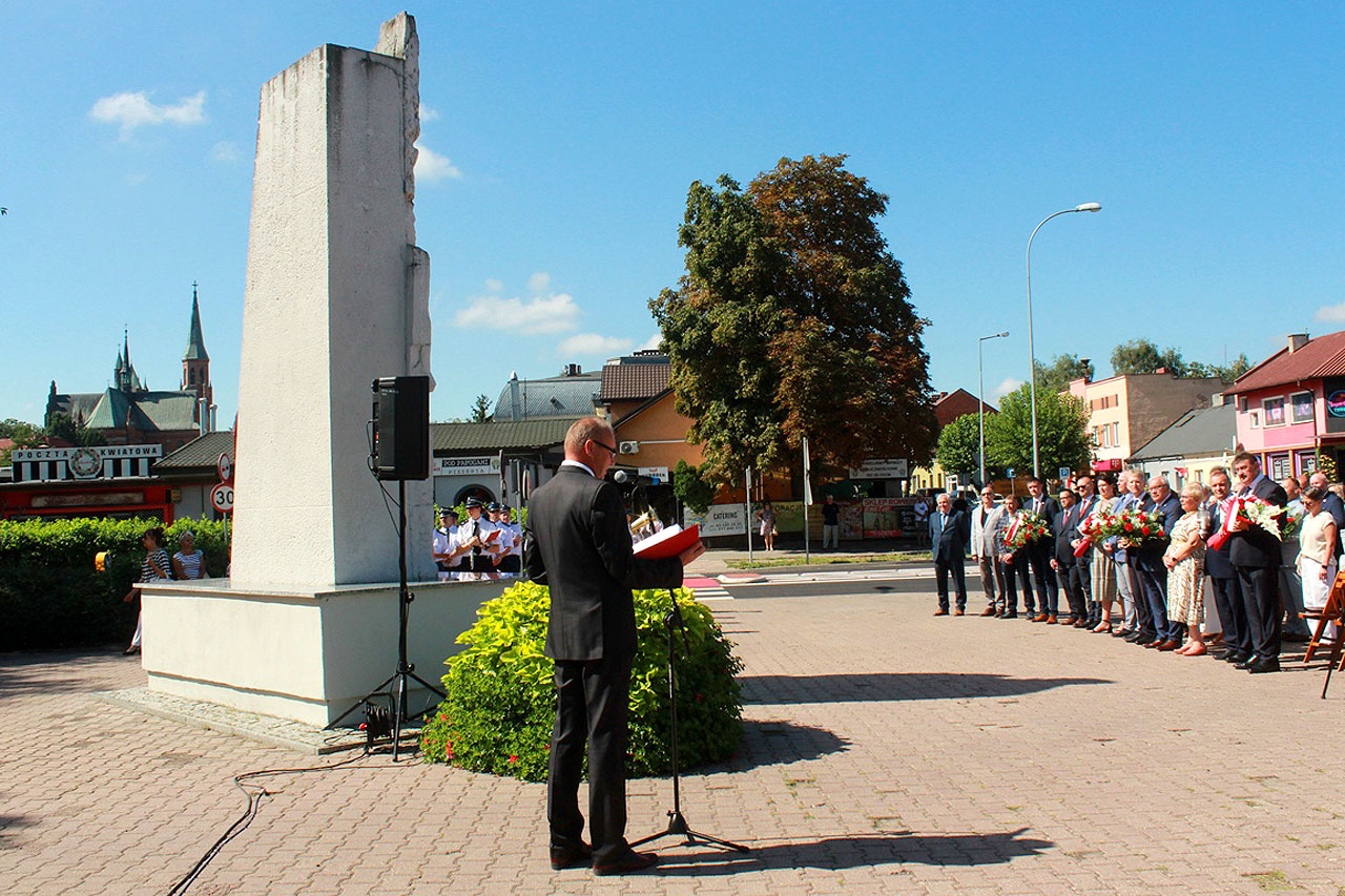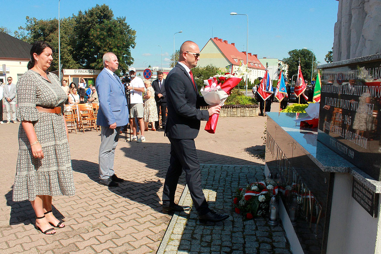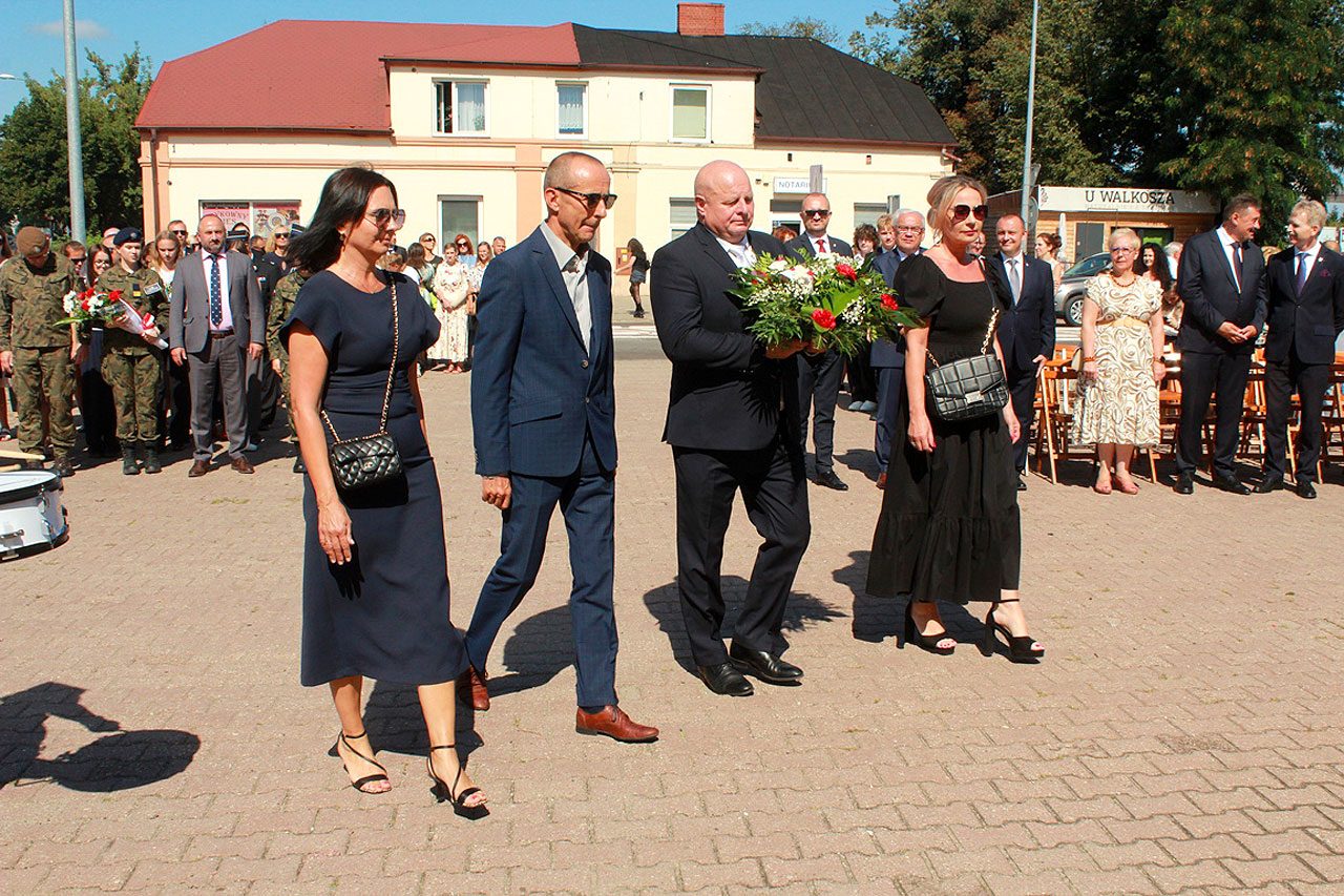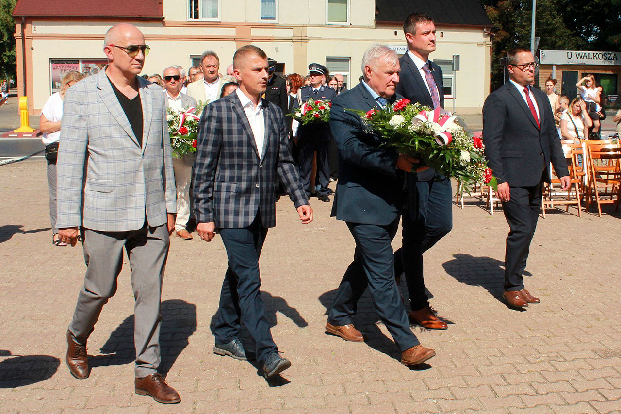 Delegacje samorządowe, instytucjonalne i społeczne złożyły wiązanki kwiatów pod pomnikiem „Nigdy więcej wojny”. Kwiaty w imieniu samorządu powiatowego złożyli Starosta Jan Smak, Wicestarosta Władysław Karski, radna Małgorzata Golczyńska oraz naczelnik Robert Żółtaszek.