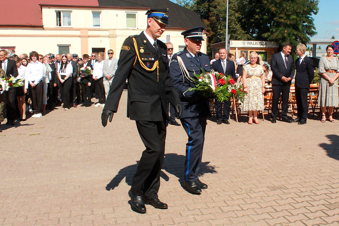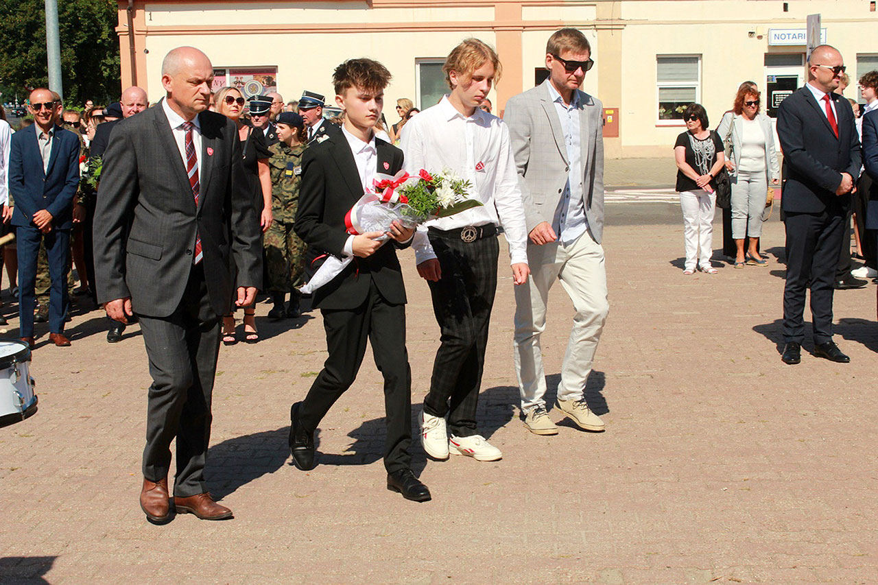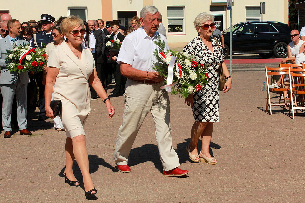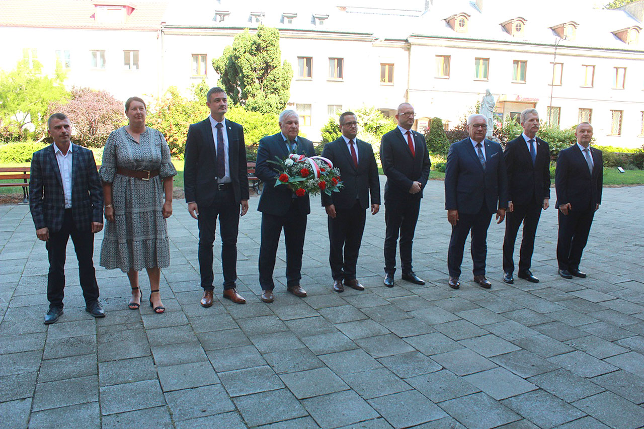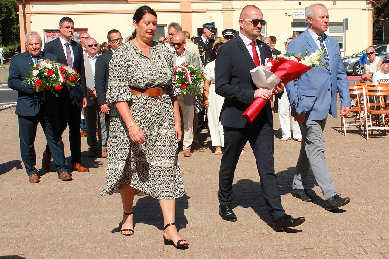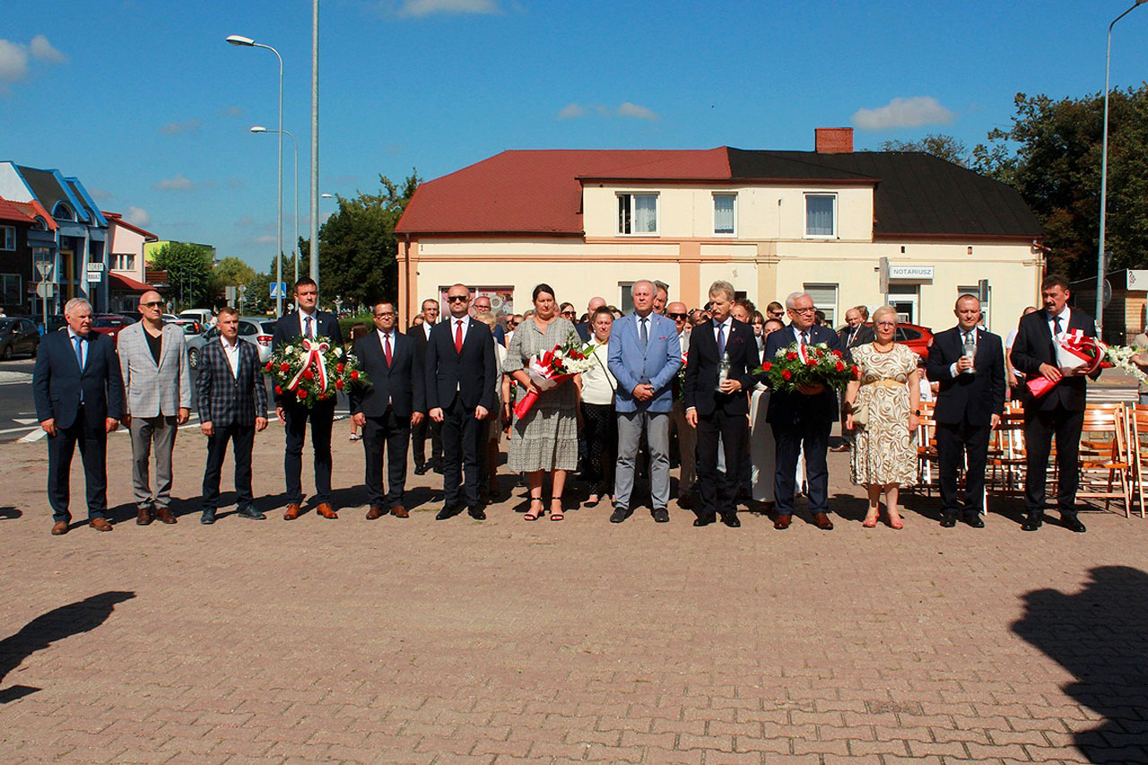Delegacje samorządowe, instytucjonalne i społeczne złożyły wiązanki kwiatów pod pomnikiem „Nigdy więcej wojny”. Kwiaty w imieniu samorządu powiatowego złożyli Starosta Jan Smak, Wicestarosta Władysław Karski, radna Małgorzata Golczyńska oraz naczelnik Robert Żółtaszek.