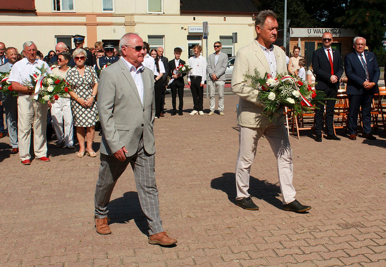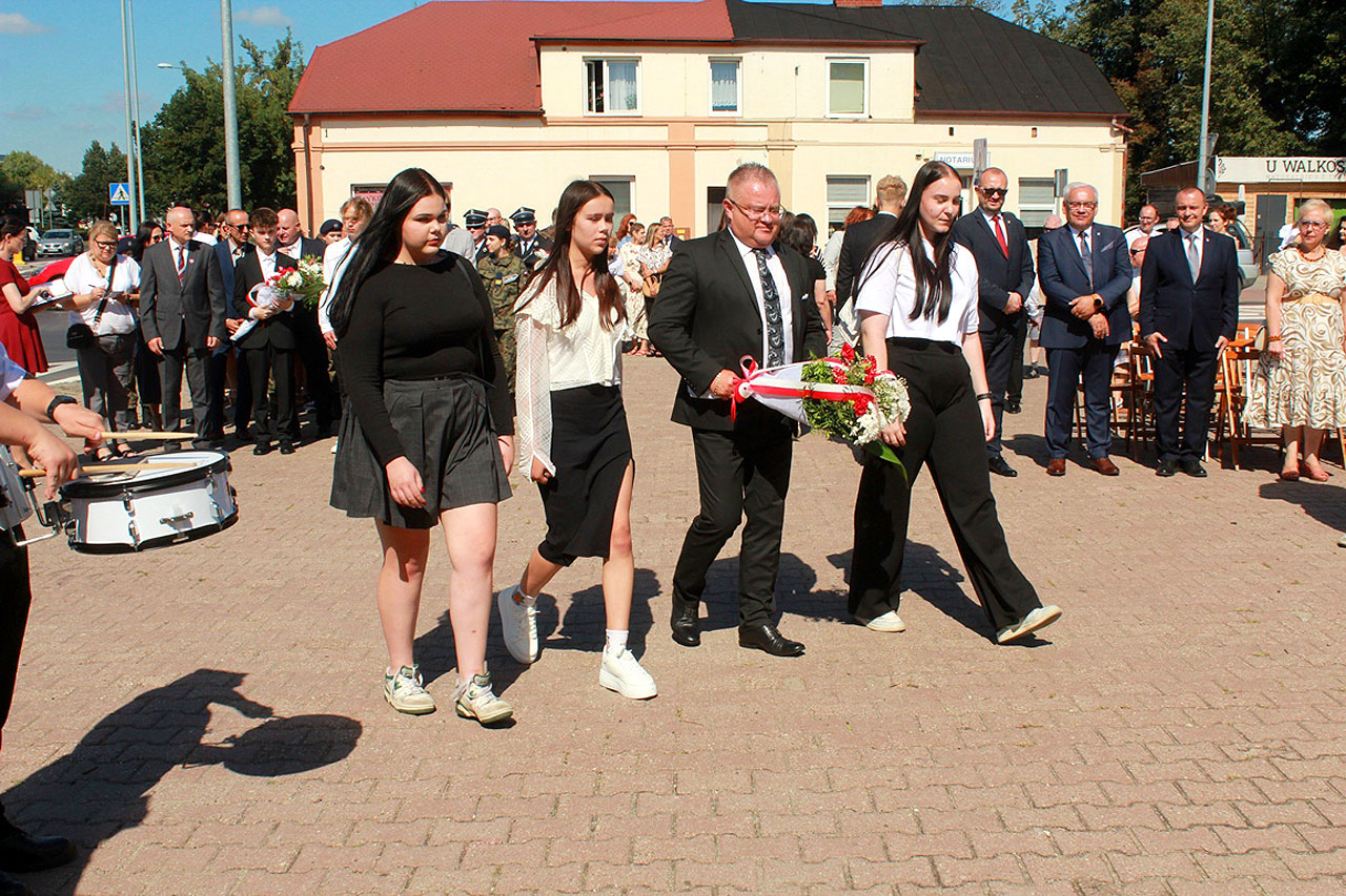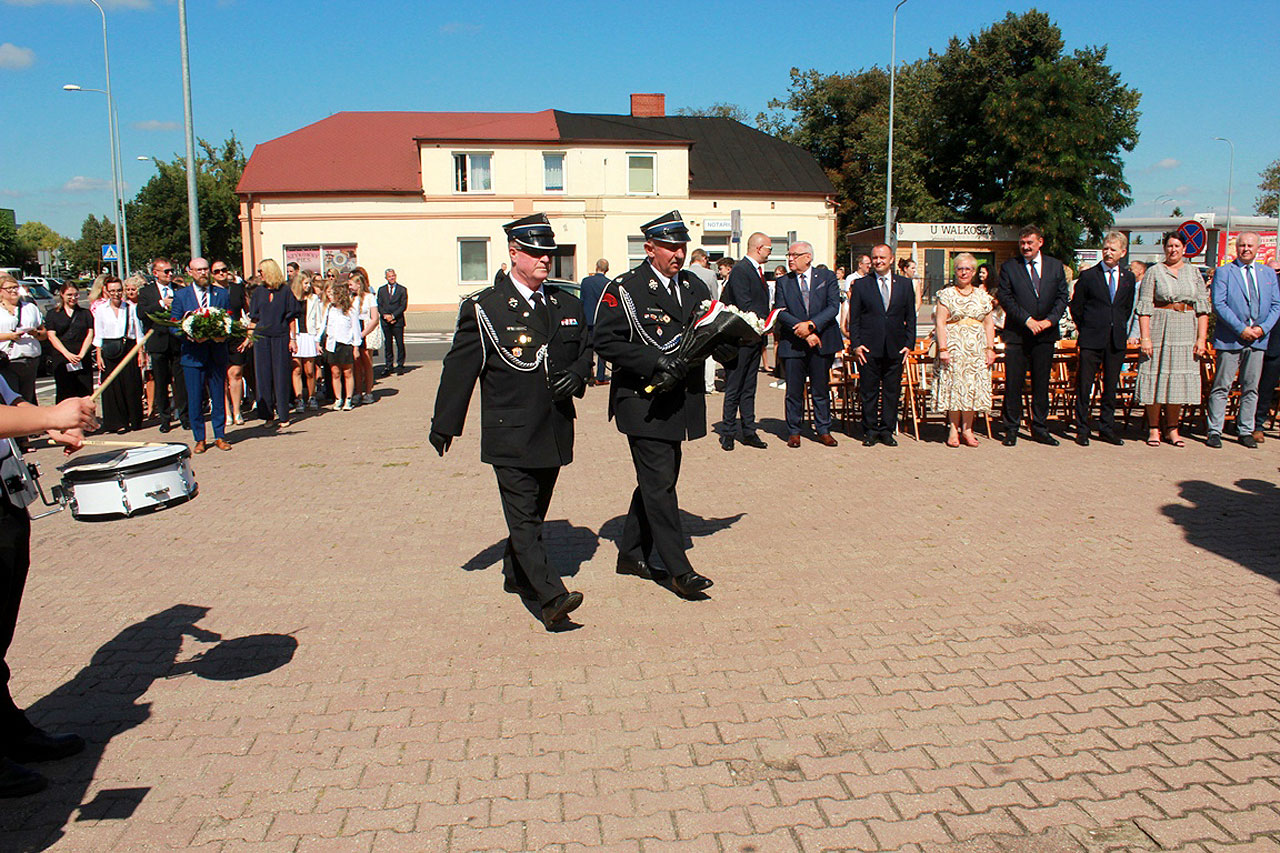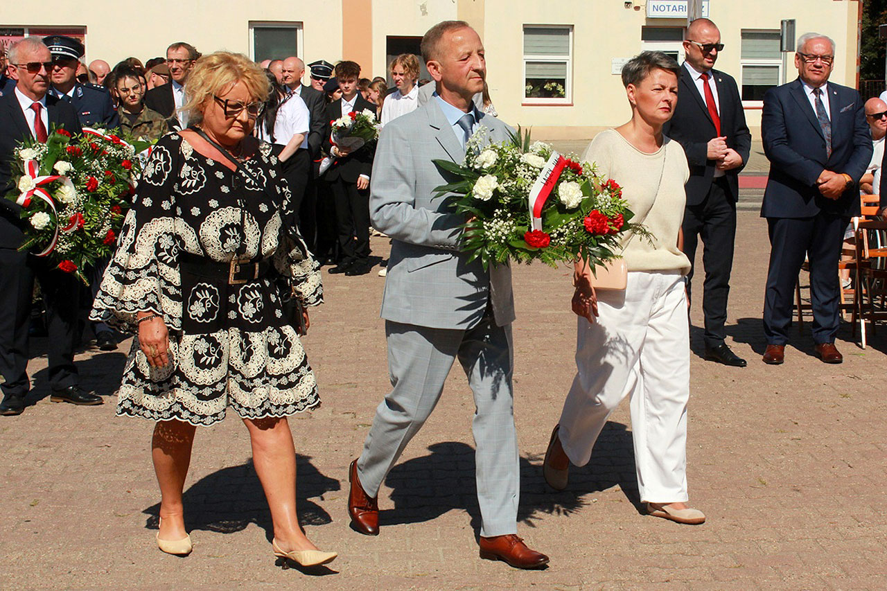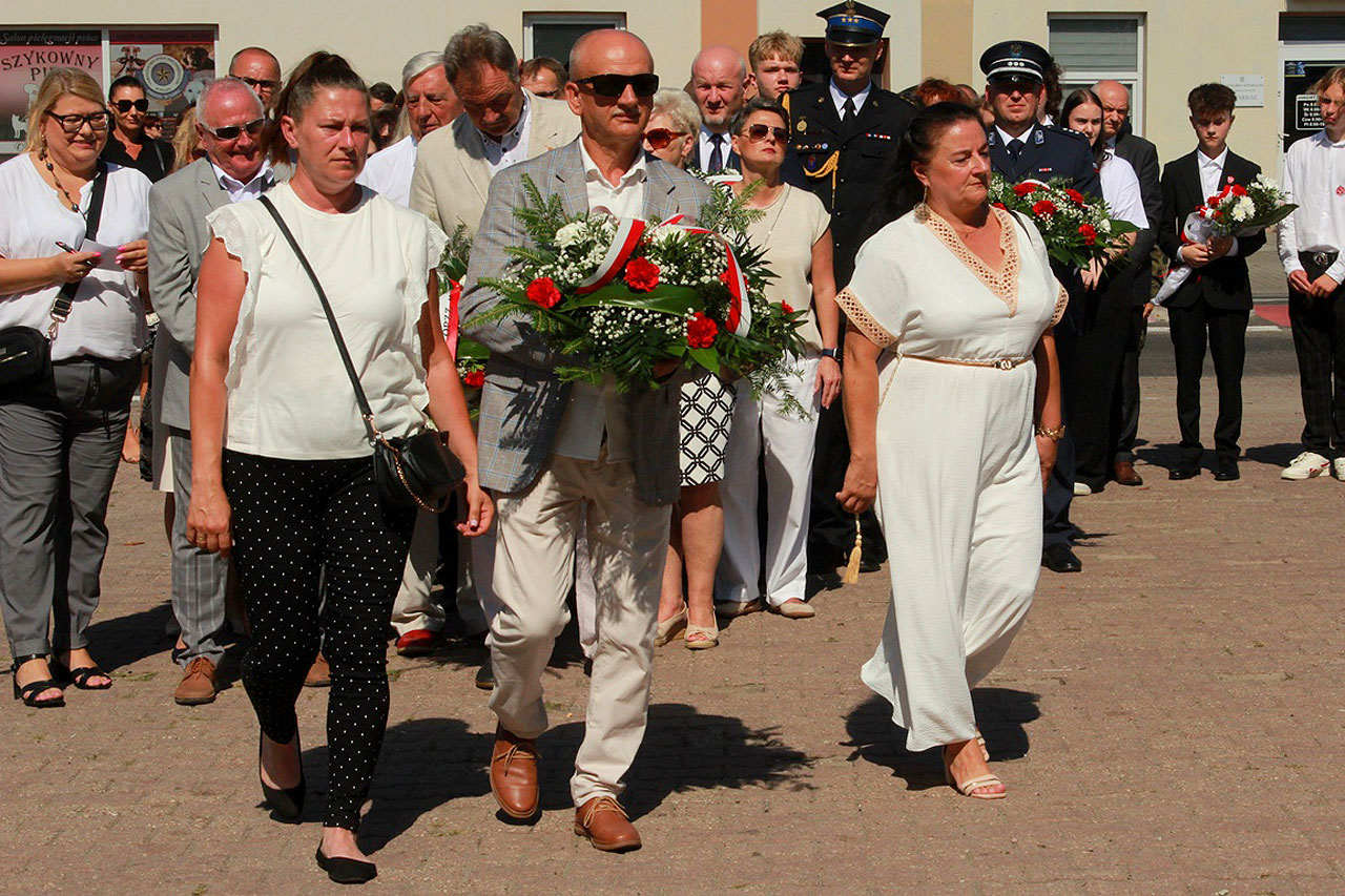 Delegacje samorządowe, instytucjonalne i społeczne złożyły wiązanki kwiatów pod pomnikiem „Nigdy więcej wojny”. Kwiaty w imieniu samorządu powiatowego złożyli Starosta Jan Smak, Wicestarosta Władysław Karski, radna Małgorzata Golczyńska oraz naczelnik Robert Żółtaszek.