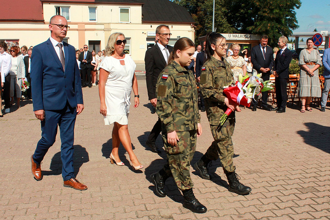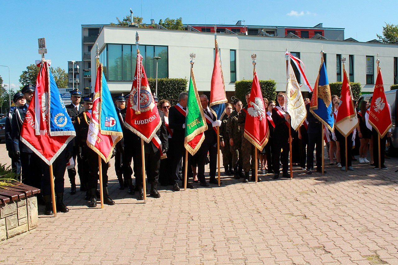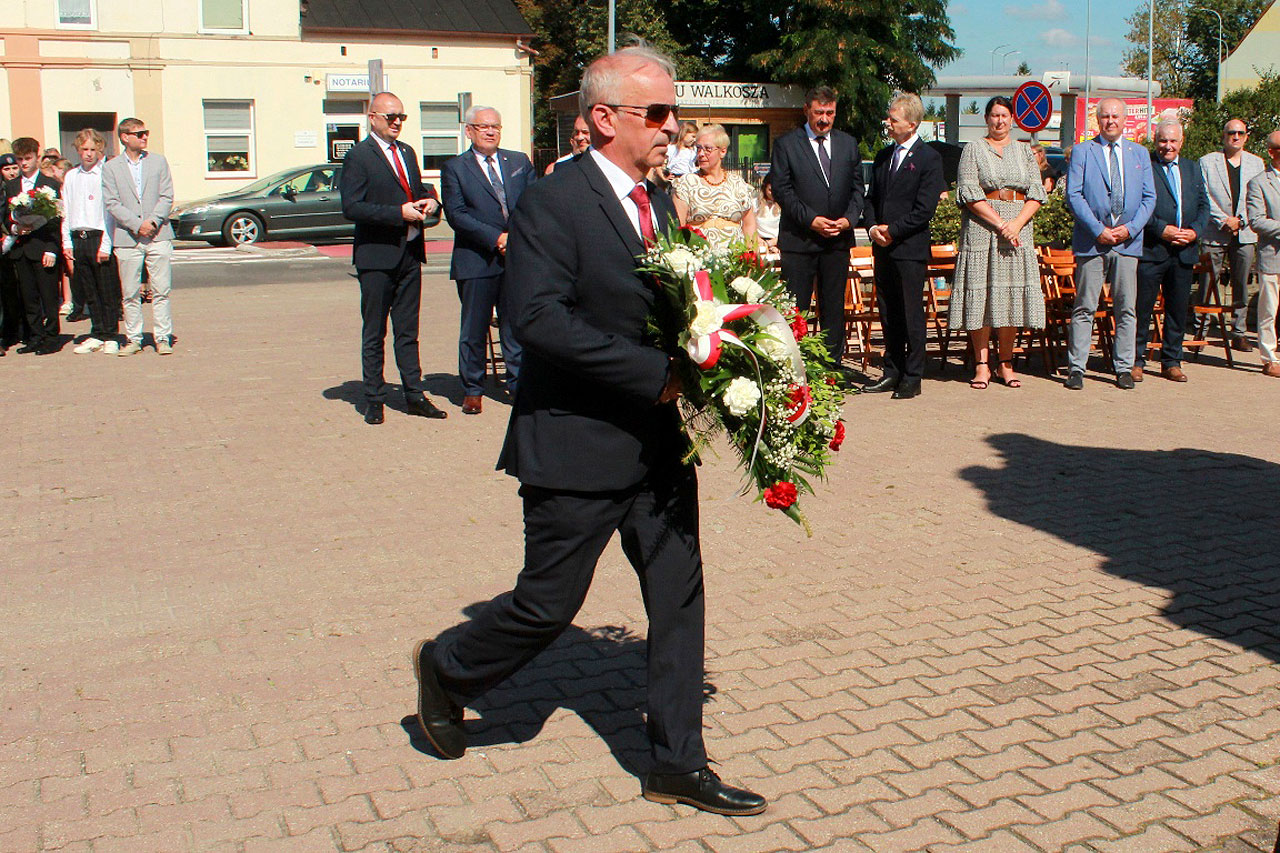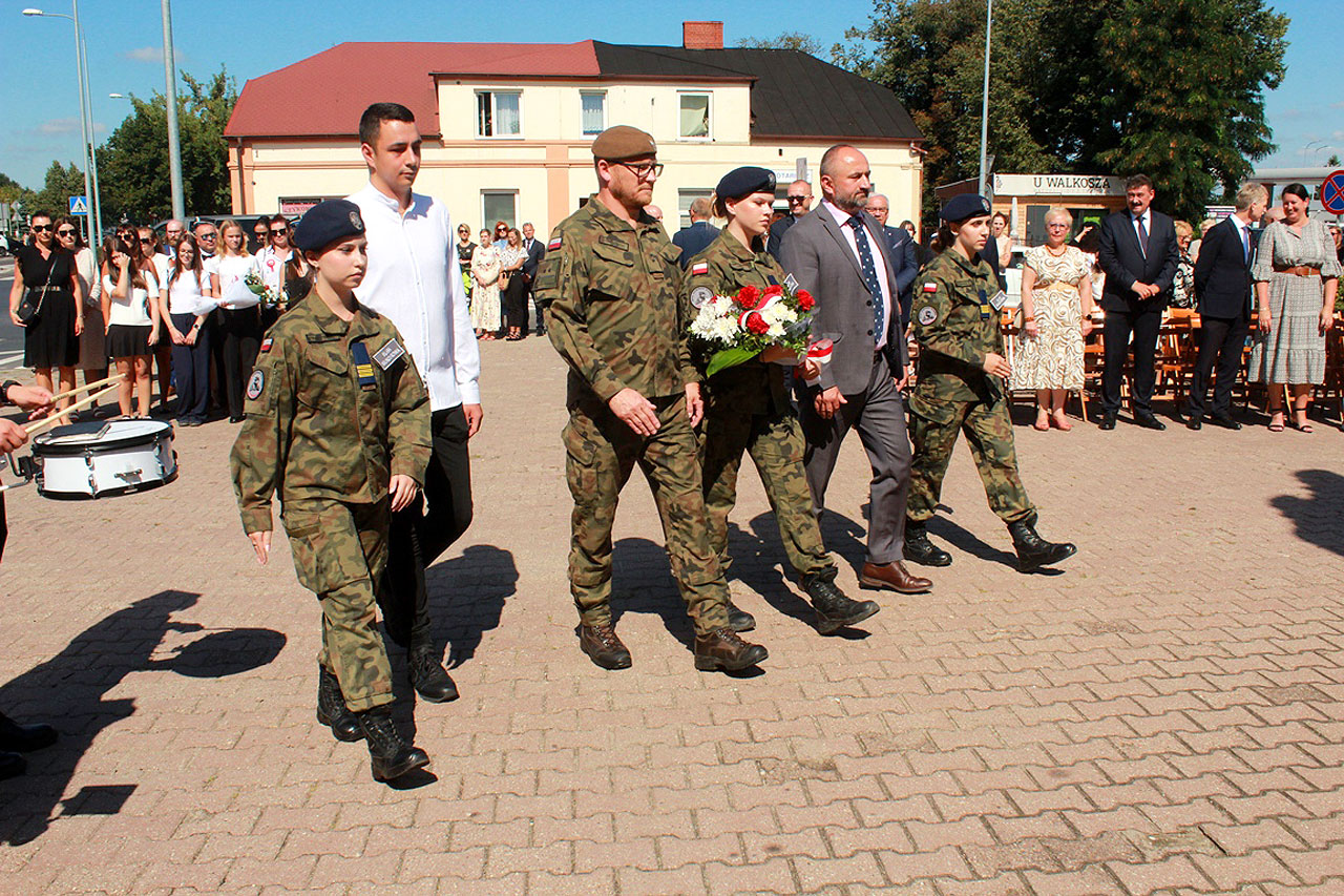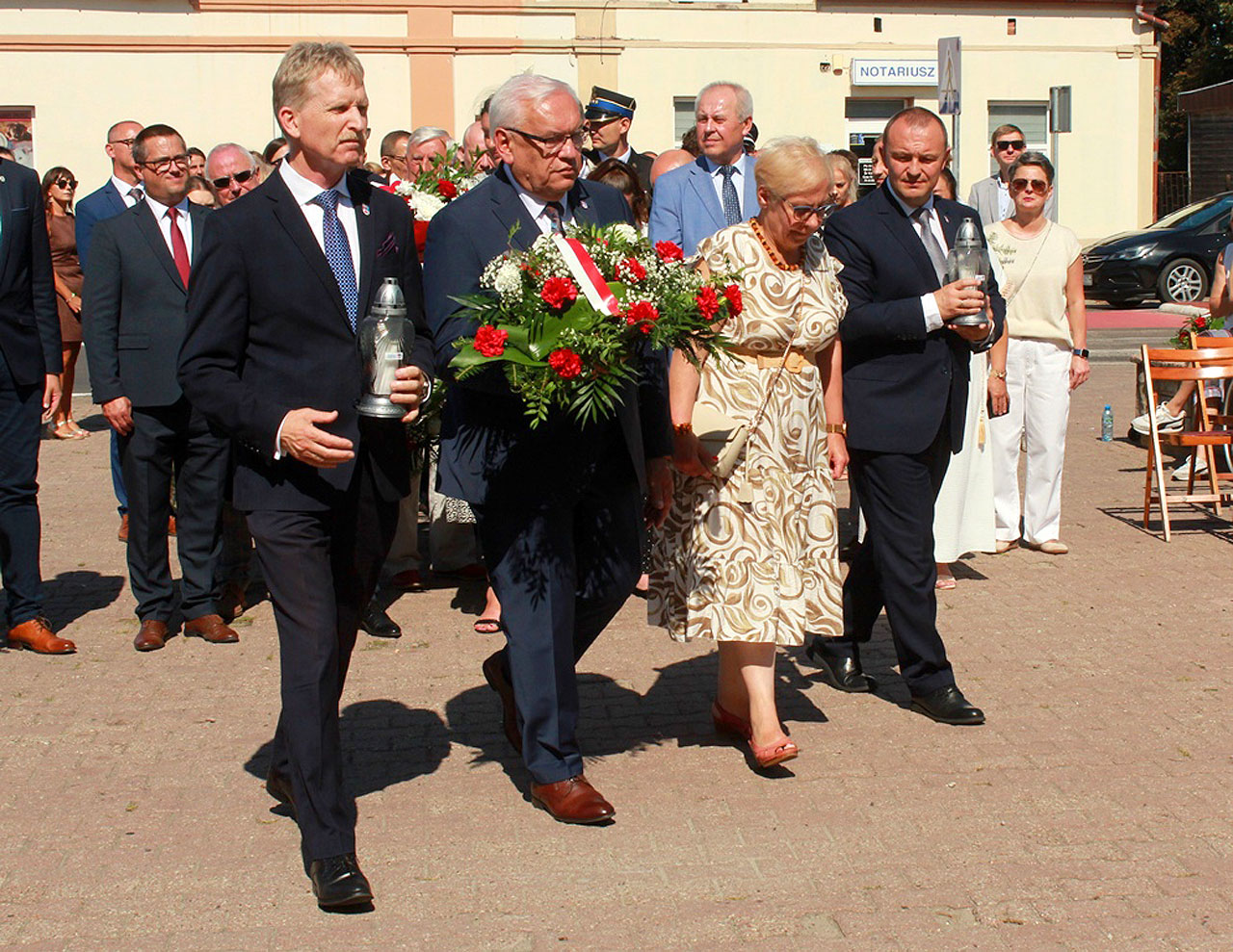 Delegacje samorządowe, instytucjonalne i społeczne złożyły wiązanki kwiatów pod pomnikiem „Nigdy więcej wojny”. Kwiaty w imieniu samorządu powiatowego złożyli Starosta Jan Smak, Wicestarosta Władysław Karski, radna Małgorzata Golczyńska oraz naczelnik Robert Żółtaszek.