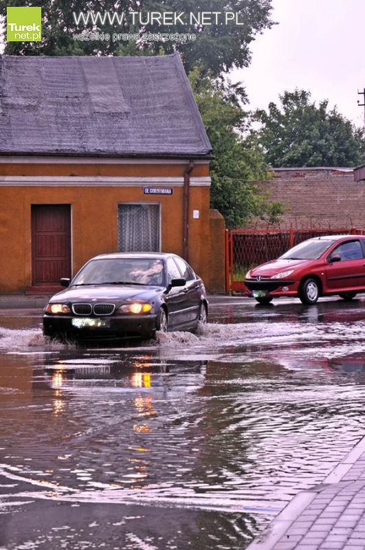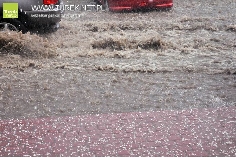 Takiego oberwania chmury dawno w Turku nie było. Grad i gwałtowne opady deszczu spowodowały, że w niektórych punktach naszego miasta rozległe kałuże znacznie utrudniały komunikację drogową.