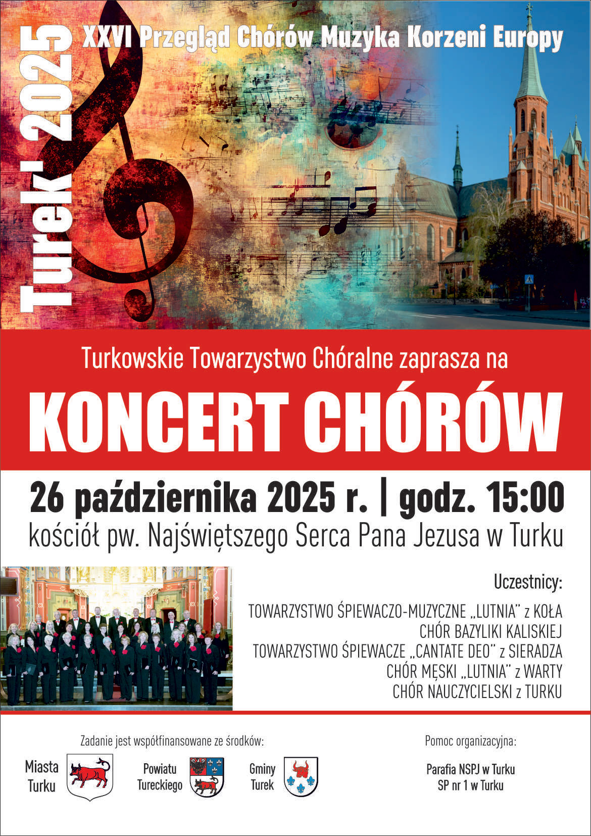 W najbliższą niedzielę, 26 października, wnętrze kościoła pw. Najświętszego Serca Pana Jezusa w Turku wypełni wielogłos i harmonia. O godzinie 15:00 rozpocznie się XXVI Przegląd Chórów „Muzyka Korzeni Europy”, jedno z najbardziej rozpoznawalnych wydarzeń muzycznych regionu, które od lat gromadzi miłośników muzyki sakralnej i chóralnej.