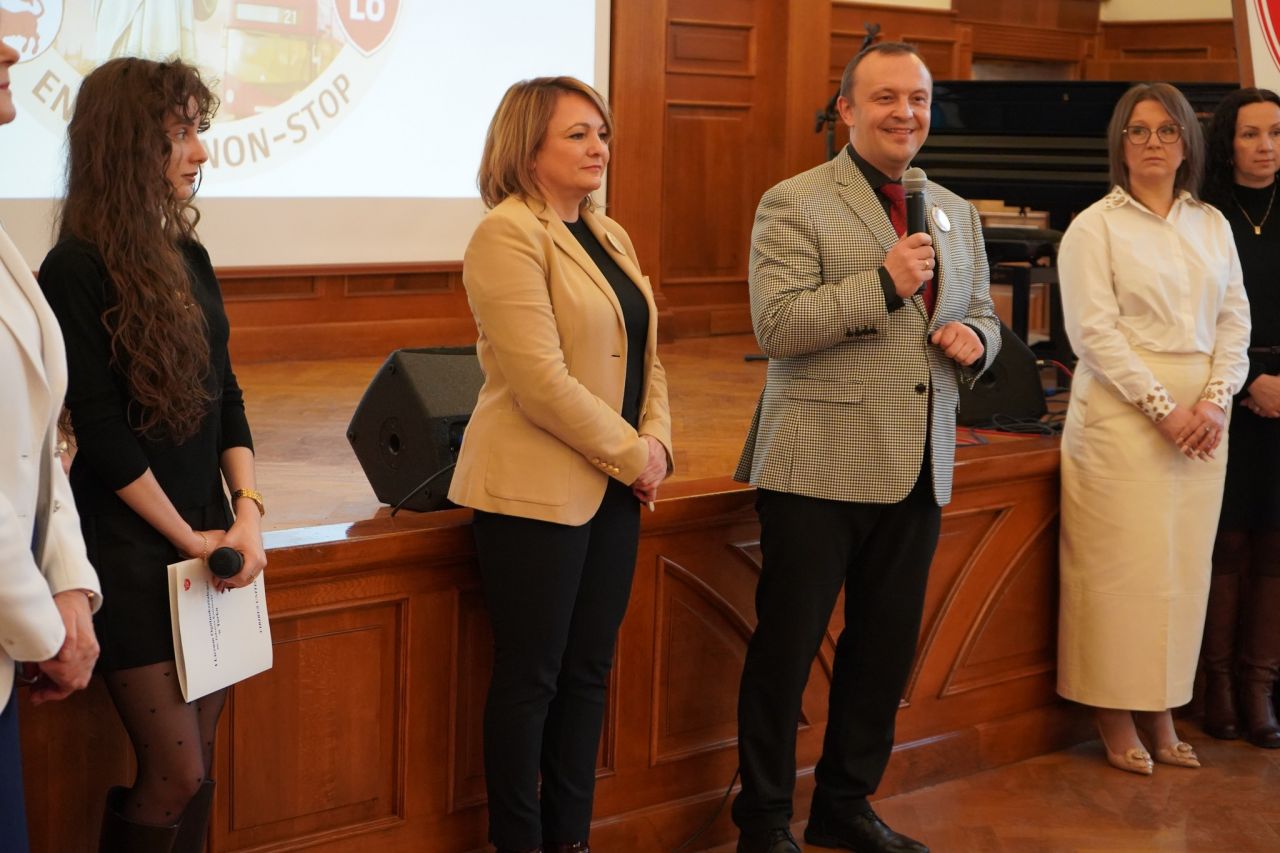 Ważnym punktem wydarzenia była prezentacja dr. Marcina Trojszczaka z Akademii Nauk Stosowanych w Koninie, który wygłosił wykład na temat zapożyczeń z języka angielskiego. Uczestnicy z zainteresowaniem śledzili opowieść o wpływie angielszczyzny na współczesny język polski, a samo wystąpienie było dla wielu z nich pierwszym kontaktem z wykładowcą akademickim. Publiczność nagrodziła prelegenta gromkimi brawami.