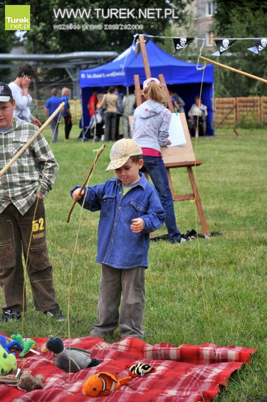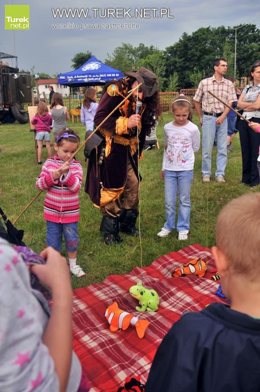 Deszczowe chmury i burza nie przeszkodziły w zabawach, jakie dla dzieci przygotowali przybyli na teren OSIRu piraci. Były zawody w łowieniu ryb, rzut podkową, pirackie wyścigi i możliwość sterowania prawdziwą piracką łajbą. Starsze dzieci zajęto pokazami robotów i udziałem w prezentacji wozu łączności działającego przy klubie SM Tęcza.