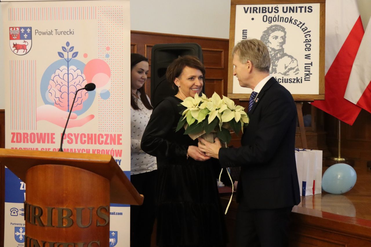 W auli I Liceum Ogólnokształcącego im. Tadeusza Kościuszki w Turku 3 grudnia 2025 r. odbyła się konferencja pod hasłem „Zdrowie psychiczne – nasza wspólna sprawa”. Wydarzenie zostało zorganizowane przez Starostę Tureckiego Jana Smaka oraz Koordynator ds. Zdrowia Psychicznego w Powiecie Tureckim Romualdę Zagozdę-Frątczak, przy współpracy Wydziału Zarządzania Kryzysowego i Ochrony Zdrowia Starostwa Powiatowego w Turku. Spotkanie zgromadziło nauczycieli, pedagogów, psychologów, pracowników instytucji pomocowych i wszystkie osoby zainteresowane tematyką zdrowia psychicznego.