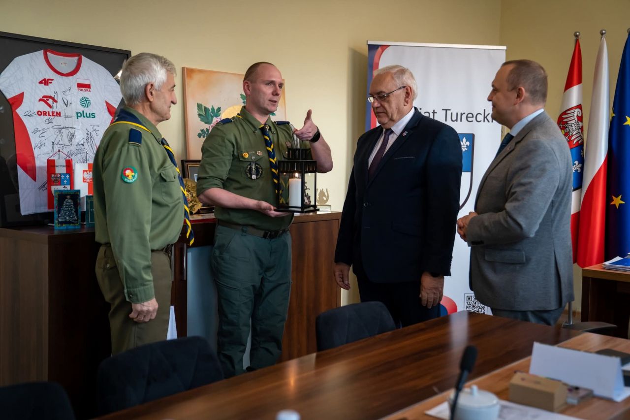 Przekazanie Betlejemskiego Światła Pokoju rozpoczęło się od wizyt w kluczowych instytucjach. Komendant Hufca ZHP Turek hm. Robert Chmielewski przekazał płomień do Starostwa Powiatowego w powiecie tureckim, a następnie do Komendy Powiatowej Policji w Turku oraz Komendy Powiatowej Państwowej Straży Pożarnej w Turku. To symboliczny moment otwierający kolejne etapy sztafety, w której uczestniczą zuchy i harcerze.