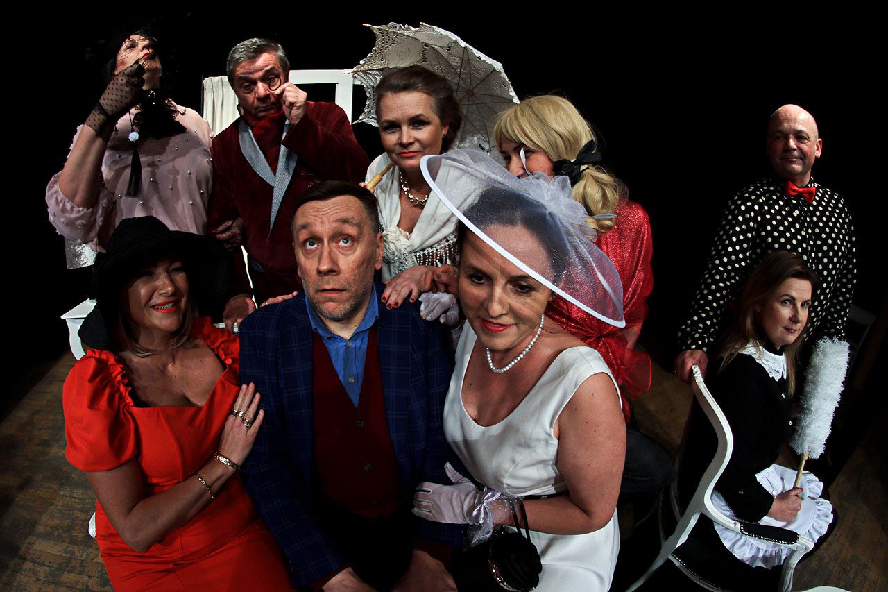 Po dobrze przyjętej premierze w kwietniu oraz kolejnych pokazach, spektakl wraca w niezmienionej, sprawdzonej obsadzie. Na scenie wystąpią Michał Kocik, Paweł Gruszczyński, Joanna Kędziora-Misiek, Jolanta Ziółkowska, Marta Krzemińska, Aneta Lubas, Marlena Graczyk, Aleksandra Purcel-Kowalska oraz Tomasz Stolarski. Oprawę muzyczną przygotował Blauer Himmel. Przedstawienie opiera się na dynamicznych dialogach i wyrazistych postaciach, unikając tanich gagów na rzecz dobrze zbudowanego komizmu sytuacyjnego.