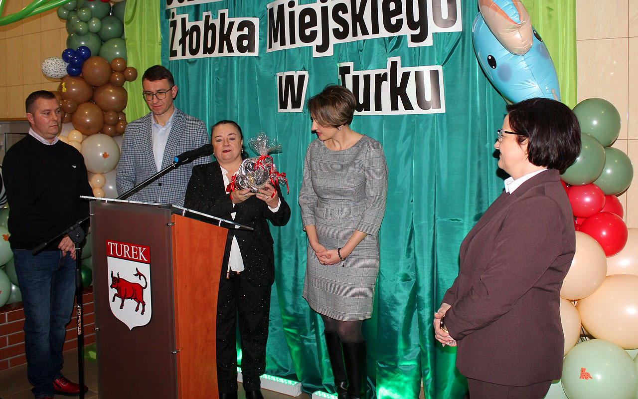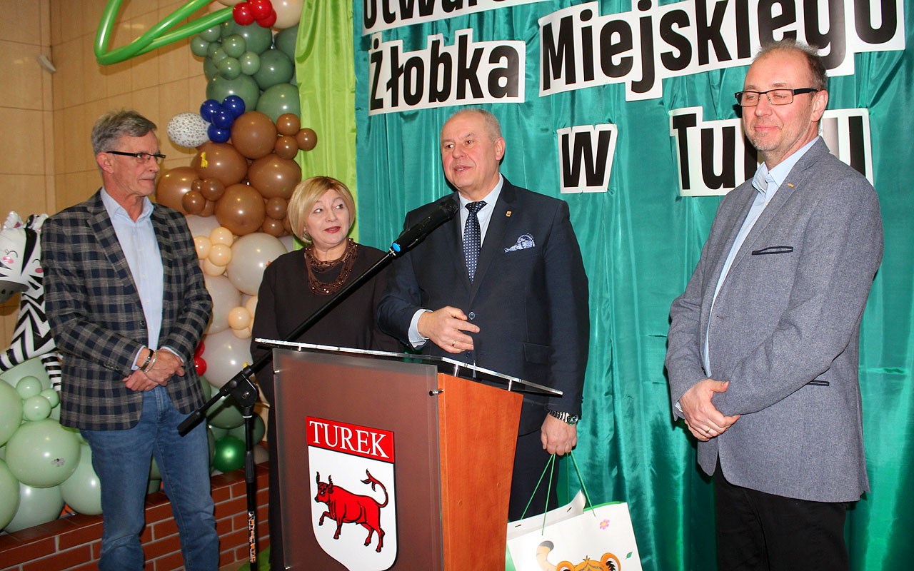 Podczas uroczystości Burmistrz Miasta Turek Romuald Antosik podziękował wszystkim osobom i instytucjom zaangażowanym w realizację przedsięwzięcia. Słowa uznania skierowano do pracowników urzędu, projektantów, wykonawców, dyrekcji i pracowników żłobka oraz podmiotów wspierających inwestycję finansowo.