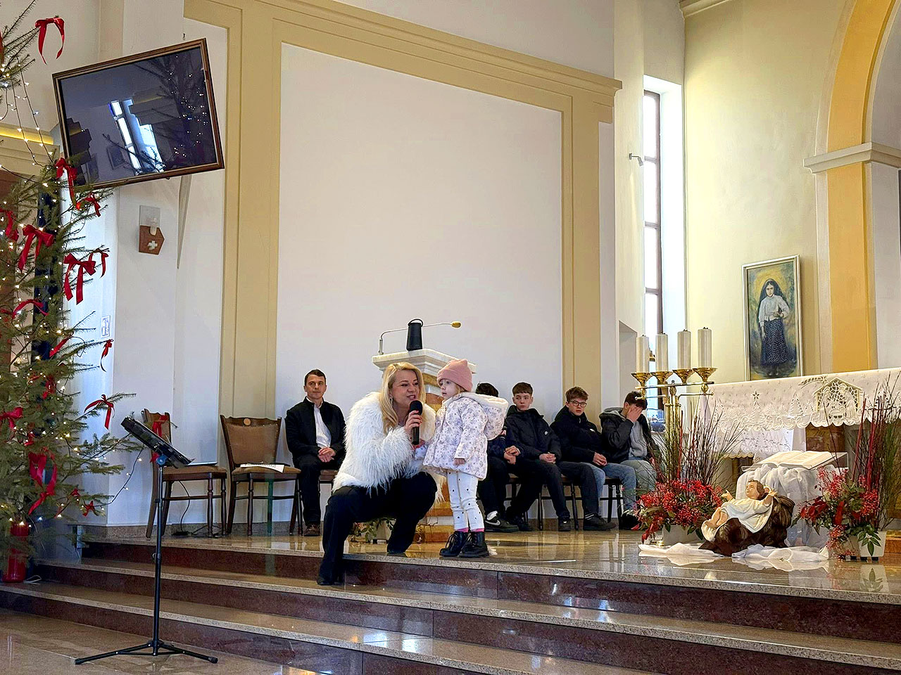 Koncert rozpoczął się bezpośrednio po zakończeniu niedzielnej Eucharystii. W przestrzeni kościoła zabrzmiały polskie kolędy i pastorałki, znane i śpiewane od pokoleń. Spotkanie miało charakter wspólnego kolędowania, w którym udział wzięli parafianie, całe rodziny oraz dzieci. Publiczność chętnie włączała się w śpiew, tworząc atmosferę skupienia, modlitwy i refleksji.