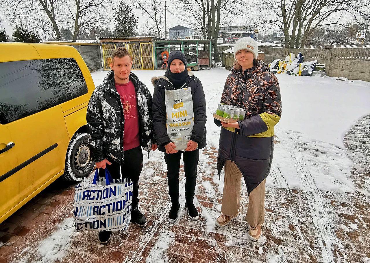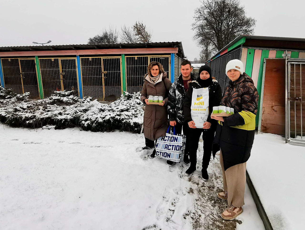 Schronisko odwiedzili uczestnicy Hufca Pracy w Turku wraz z komendantem jednostki oraz wychowawcą. Młodzież wcześniej zorganizowała zbiórkę karmy, dzięki czemu do placówki trafiły puszki, sucha karma i inne potrzebne artykuły.