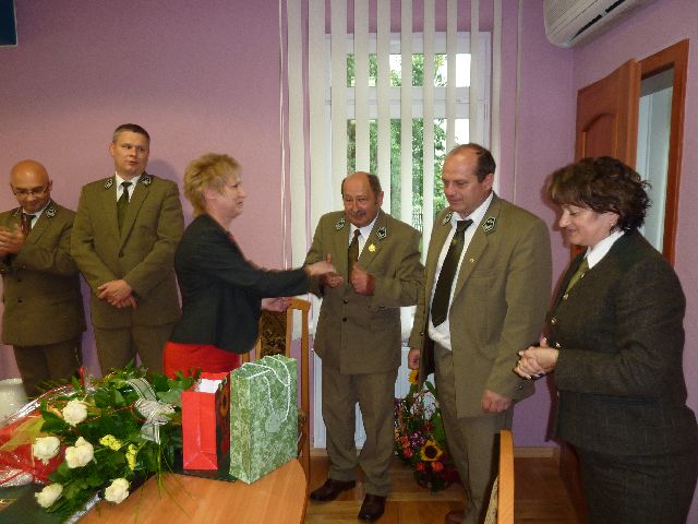 Z okazji przejścia na emeryturę zorganizowano uroczystą naradę wszystkich pracowników nadleśnictwa. W uroczystości wzięło udział wielu gości z zewnątrz, na co dzień współpracujących z nadleśnictwem i znających jubilata. Był czas na wspomnienia, życzenia i upominki. Jacek Kokociński w imieniu Dyrektora Piotra Grygiera wręczył Janowi Gadzinowskiemu Kordelas Leśnika (z numerem 147). Natomiast Halina Stachowska odznaczyła emeryta Złotą Odznaką Zasłużony Dla Leśników Polskich.