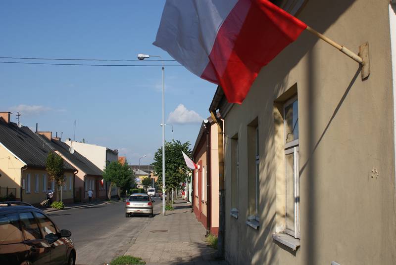 Najbardziej widocznym ustosunkowaniem się do obchodów 67. rocznicy Powstania Warszawskiego było wywieszenie barw narodowych. Z tymi na terenie miasta było różnie. Flagi można było spotkać głównie na najbardziej uczęszczanych ulicach, np. na Kaliskiej, Kolskiej itp. Różnego rodzaju instytucje i urzędy także raczej zastosowały się do prośby Burmistrza. O „wysypie” flag nie można za to mówić w przypadku domów prywatnych, elewacji bloków.