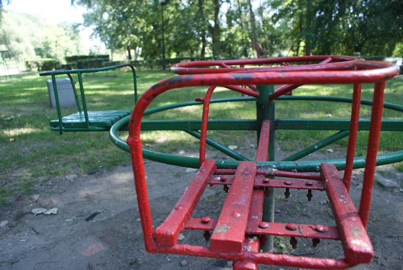 Kolejny przykład to chociażby plac zabaw w parku im. Żerminy Składkowskiej. Mimo otaczającej go przyrody, nie najnowsze „zabawowe” konstrukcje prezentują się wyjątkowo depresyjnie i wyraźnie widać, że nagryzł je „ząb czasu”.