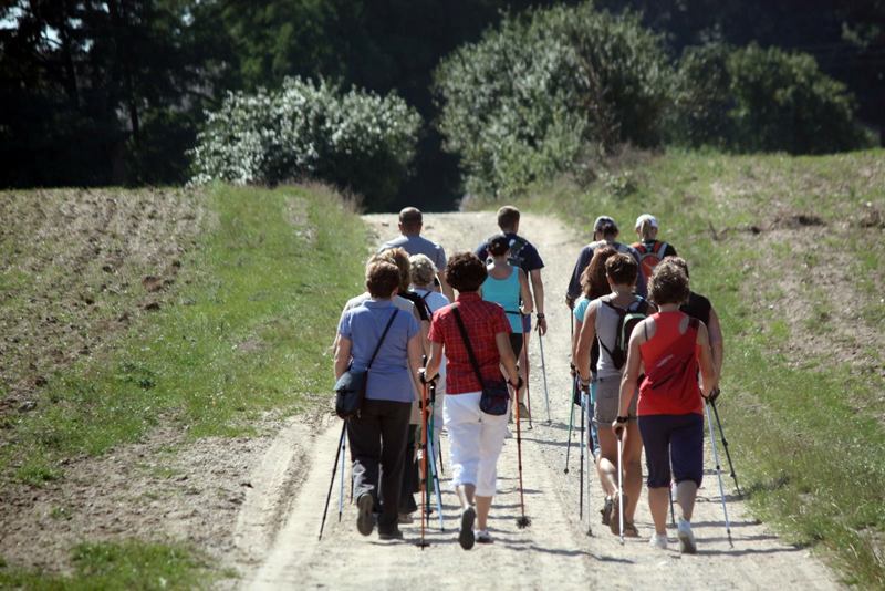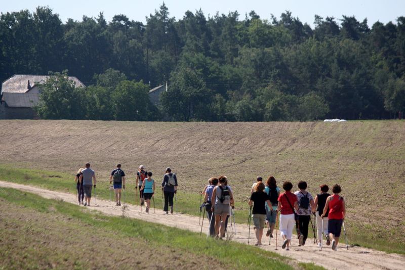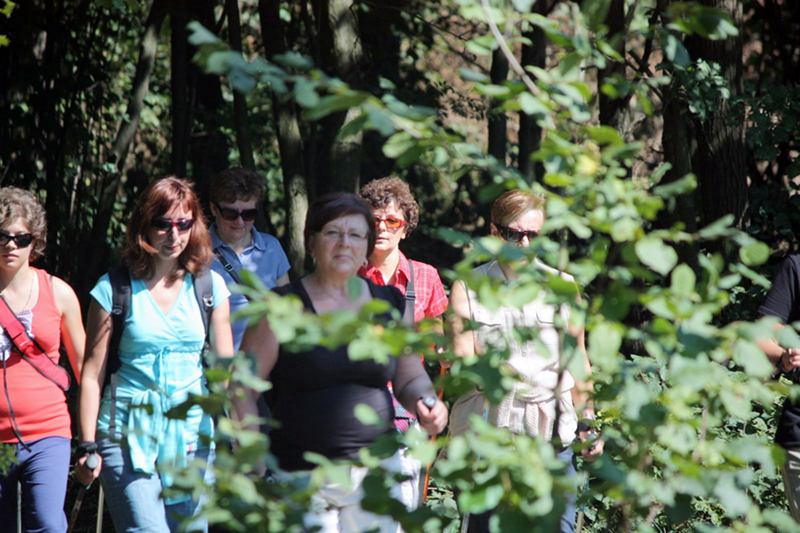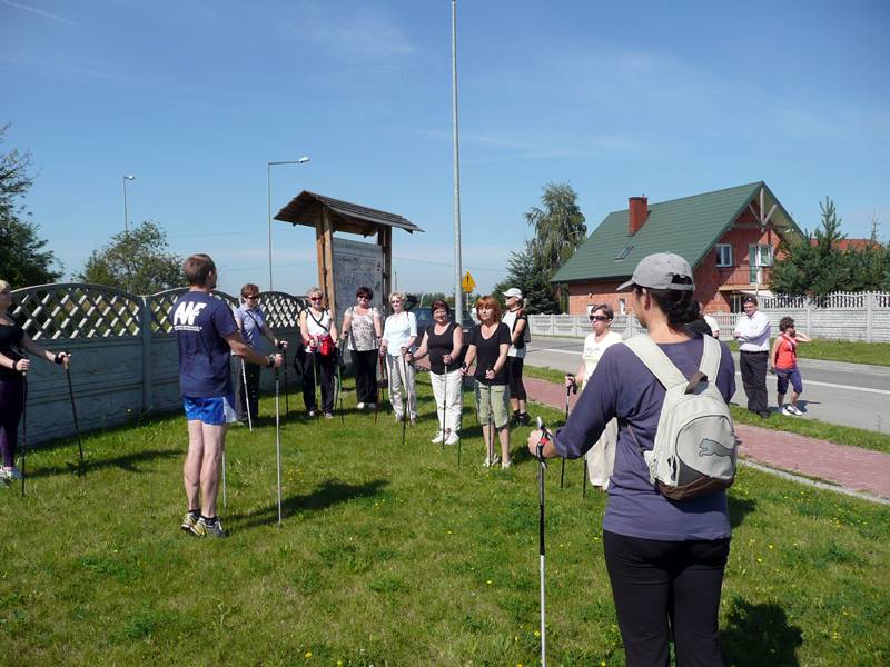 Godzinę później wyruszyła na szlak nordic walking - ul. Leśną grupa piesza, która liczyła 20 osób. Pokonali oni trasę ok. 10 km. Wszyscy spotkali się ok. godz. 13 na parkingu leśnym na Uroczysku Cisew, gdzie na uczestników rajdu czekały dalsze atrakcje, m.in.: grill, upominki przygotowane przez Bank BGŻ, konkursy oraz wspólne biesiadowanie przy ognisku przy dźwiękach akordeonu.