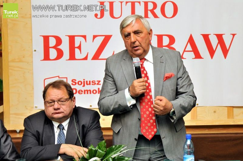 Czołowa postać SLD, Ryszard Kalisz w swoim przemówieniu namawiał przede wszystkim na udział w wyborach i oddanie głosu na kandydatów SLD. Z sentymentem wspominał czasy wspólnej pracy w sejmie z Marianem Mirosławem Marczewskim. Wiele ciepłych słów o swojej osobie usłyszał także Kazimierz Pałasz, długoletni prezydent Konia, aktualnie starający się o mandat senatorski. Obok wspomnień pojawiły się także konkrety, turkowianie zebrani w sali Cechu Rzemiosł mogli zapoznać się z podstawowymi założeniami programowymi Sojuszu Lewicy Demokratycznej. Według SLD każdy ma prawo do godności, swobody i szacunku. Kalisz wspomniał również o potrzebie pobudzenia gospodarki oraz konieczności zreformowania służby zdrowia i systemu emerytalnego. Szczegółami odnośnie realiów lokalnych zajął się, startujący z pozycji 4, Mirosław Marczewski, który widzi siebie przede wszystkim jako posła upierdliwego, lobbującego na rzecz swojego regionu.
