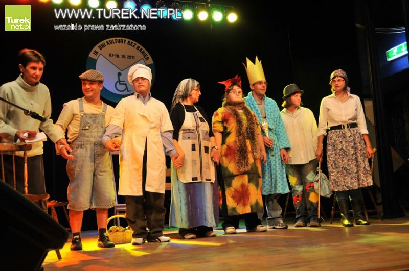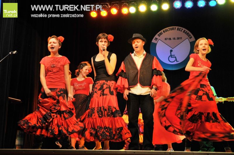Osoby niepełnosprawne z Turku udowodniły, że kultura nie ma dla nich żadnych barier. Na scenie turkowskiego MDKu świetnie poradzili sobie wokaliści ze Środowiskowego Domu Samopomocy w Turku. Piosenkę przygotowały także uczennice integracyjnej klasy VI a ze Szkoły Podstawowej nr 5. Kolorowym występem oczarowały publikę dzieci z grupy integracyjnej Przedszkola Samorządowego nr 8. Program artystyczny z elementarni hiszpańskiego flamenco przygotowali również wychowankowie Specjalnego Ośrodka Szkolno-Wychowawczego im. Kornela Makuszyńskiego. Jako ostatni zaprezentowali się uczestnicy Warsztatów Terapii Zajęciowej SINTUR. Tym razem artyści postawili na spektakl teatralny, w którym opowiedzieli historię Jasia i kurki znoszącej złote jajka.