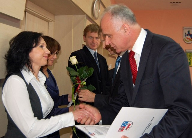 Pracownicy Kuratorium Oświaty, przedstawiciele związków zawodowych nauczycielstwa, dyrektorzy szkół i placówek z powiatu tureckiego spotkali się w sali Solidarności by uczestniczyć w uroczystym wręczaniu nagród wyróżniającym się nauczycielom, pracującym w placówkach prowadzonych przez Powiat Turecki. Nagrody zasłużonym pracownikom placówek edukacyjnych wręczali Starosta Turecki, Wicestarosta oraz Przewodniczący Komisji Edukacji.