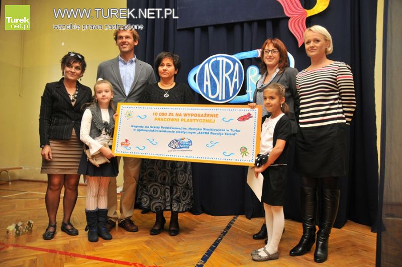 Ogólnopolski konkurs plastyczny „ASTRA rozwija talenty” zakończył się w czerwcu br. Wśród laureatów znalazły się dwie turkowianki – uczennice Szkoły Podstawowej nr 1. Dopiero podczas gali finałowej dowiedziały się, że jedna z nich – Paulina Grąbowska zdobyła pierwszą nagrodę. Druga z dziewczynek, została wyróżniona zajmując zaszczytne 17 miejsce spośród 50 wyróżnień z całej Polski. Wtedy też otrzymały nagrody indywidualne – między innymi w ręce zwyciężczyni trafił nowoczesny netbook. Komputerem nagrodzona została również opiekunka laureatki – Grażyna Sujewicz. Na tym jednak pula nagród się nie skończyła, wyróżnienie specjalne otrzymała także Szkoła Podstawowa nr 1, do której uczęszczają uczennice.