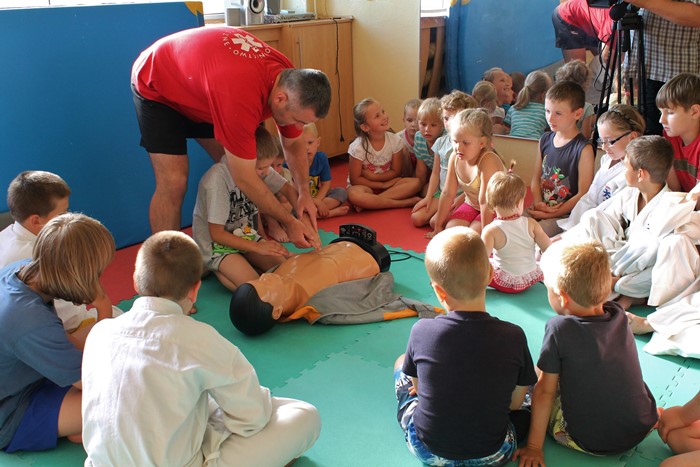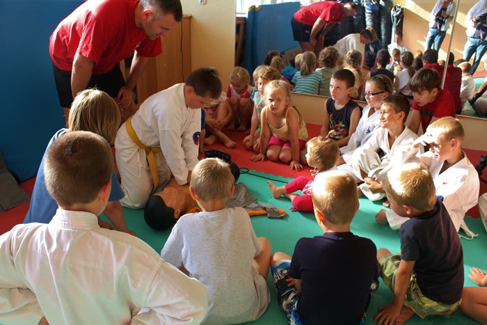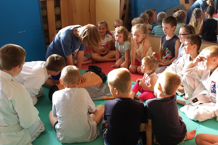 W trakcie wakacji Turkowski Klub Karate prowadzi bezpłatne zajęcia dla dzieci i młodzieży. Stąd też w każdą środę, o godz. 17.00 do klubu przychodzi około 20-30 dzieciaków, aby przez ponad godzinę świetnie się tu bawić. Pierwsze spotkania obfitowały w ciekawe zdarzenia. Poza zabawami i treningiem karate, z dzieciakami spotkały się między innymi funkcjonariusze Komendy Powiatowej Policji w Turku. Z kolei w tym tygodniu z uczestnikami wakacyjnych zajęć spotkał się ratownik medyczny, który utrwalał podstawy pierwszej pomocy przedmedycznej.