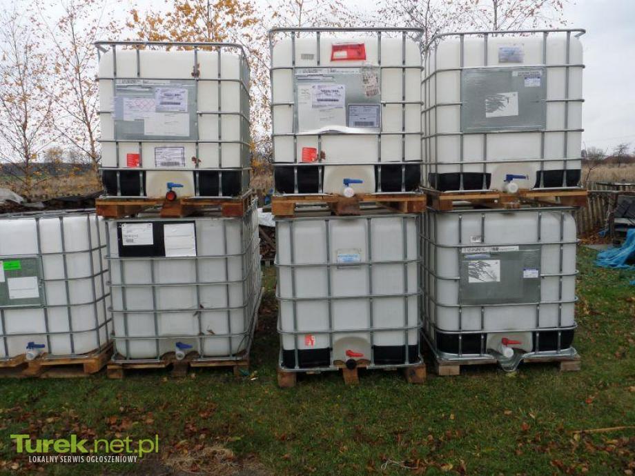 Beczki, paletopojemniki 1000 L. Pojemniki w bardzo dobrym stanie na metalowych, plastikowych paletach bez osadu w środku. Są to zbiorniki głównie po chlorze lub wodzie utlenionej. Idealne na ciecze , deszczówkę, ropę, olej, czy cele budowlane. Pojemniki nadawają się do wszelkiego rodzaju płynów -wody, deszczówki, oleju opałowego, nieczystości, nawozów itp. Posiadają szczelne, kompletne zawory oraz pokrywy górne. Turek.