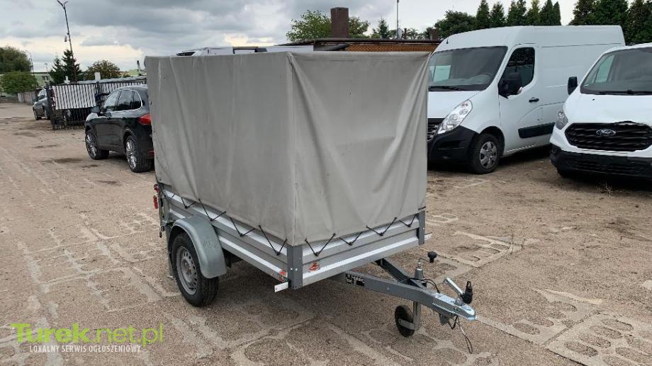 przyczepka jest z plandeką oraz z tylnymi podpórkami do 750 kg, z 2020r. wymiary 115x210