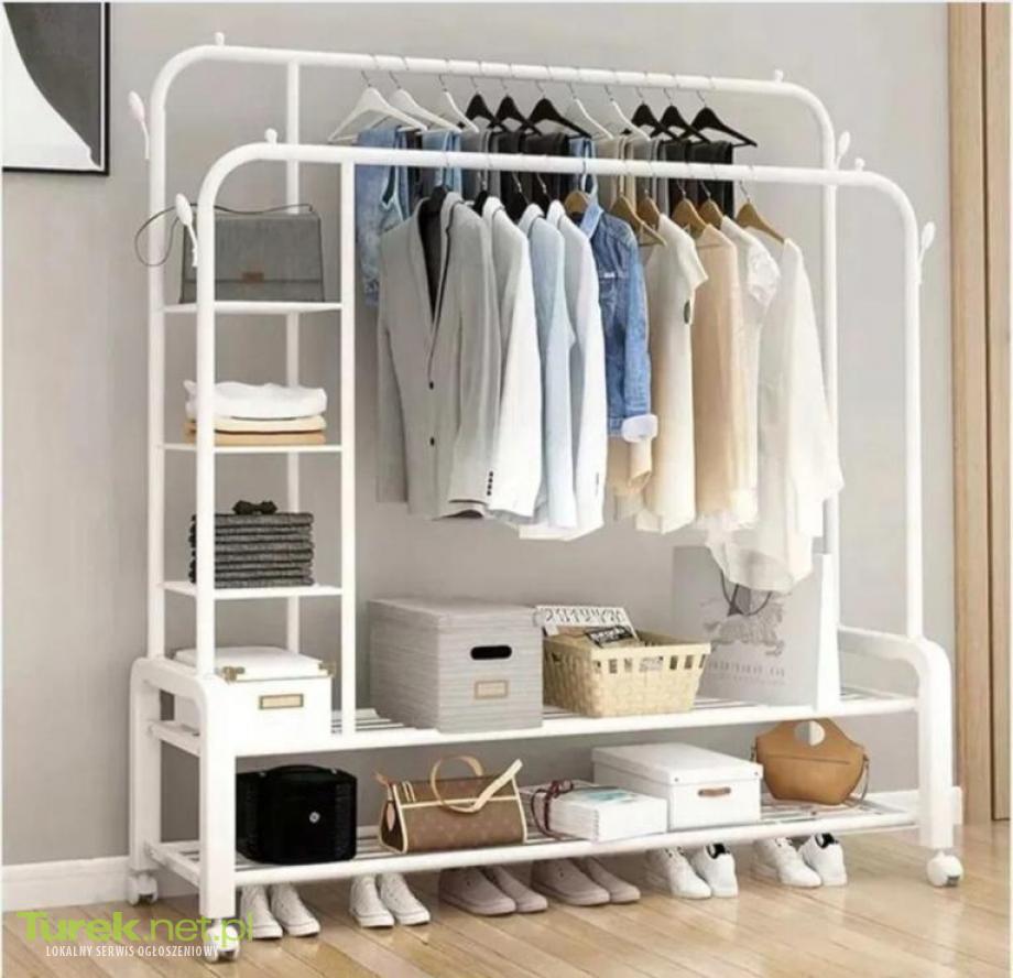 Podwójny wielofunkcyjny wolnostojący wieszak na ubrania- biały Jeśli potrzebujesz większej przestrzeni na ubrania, podwójny wieszak może być rozwiązaniem. Koła ułatwią przemieszczanie wieszaka po pomieszczeniu. Jest prosty w użyciu i można na nim zawiesić wiele ubrań. Cechy: Haczyki na Torby lub Kapelusze: Te haczyki są wygodne do zawieszania toreb, kapeluszy, szalików i innych akcesoriów. Ułatwiają szybkie sięgnięcie po te przedmioty przed wyjściem z domu. Przestrzeń na Wieszanie Ubran: Duża przestrzeń na wieszanie ubrań jest przydatna do przechowywania płaszczy, kurtek i innych odzieży w porządku i bez zagnieceń. Półka na Dole: Wielofunkcyjna półka na dole może służyć różnym celom. Możesz użyć jej do przechowywania butów, umieścić kosze na ubrania lub pojemniki na organizację, a także inne przedmioty, takie jak parasole czy akcesoria dla zwierząt. Przestrzeń na Buty Pod Półką: Dodatkowa przestrzeń na buty pod dolną półką to świetna cecha. Pomaga zachować porządek w przechowywaniu obuwia. Produkt powystawowy. Faktyczny stan przedmiotu przedstawiony od 2zdjecia. 441/25