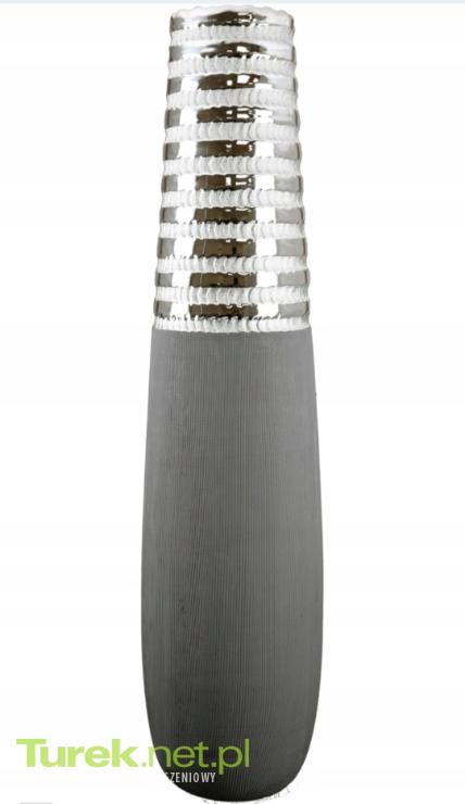 Duży wazon na trawę pampasową Gilde jest wykonany z ceramiki. 50cm wysokości i 10cm szerokości. Wazon dekoracyjny jest matowy szary ze srebrnymi aplikacjami – wysoki wazon do niezwykłych dekoracji. Produkt powystawowy. Faktyczny stan przedmiotu przedstawiony od 2zdjecia. Zastępcze opakowanie. 415/25