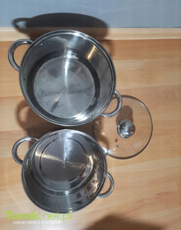 Garnek Kamberg COUSCOUSSIER ze stali nierdzewnej o pojemności 6 litrów. Produkt 3 w 1: garnek do kuzy, czajnik i parowar. Kolekcja Kamberg nadaje się do wszystkich rodzajów kuchenek: indukcyjnych, gazowych, elektrycznych i ceramicznych. Wykonana z wysokiej jakości stali nierdzewnej – nitowane uchwyty chroniące przed wysoką temperaturą – szklana pokrywka z uchwytem ze stali nierdzewnej – grube dno z 5 warstw – optymalne rozprowadzanie ciepła – zdrowe i szybkie gotowanie – wymiary wkładu do gotowania na parze: średnica 22 cm/wysokość 11 cm; wymiary garnka wodnego: średnica 22 cm/wysokość 16 cm. Produkt używany, w dobrym stanie. Faktyczny stan przedmiotu przedstawiony od 2zdjecia. Podniszczony kartonik. 391/25