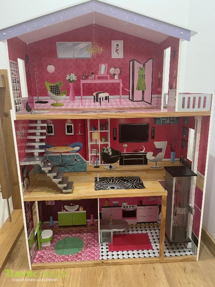 Sprzedam solidny, drewniany domek dla lalek w bardzo dobrym stanie. Domek jest wysoki i posiada trzy piętra, każde z osobno urządzonymi pomieszczeniami – kuchnia, łazienka, salon, sypialnia i garderoba. Wnętrze jest kolorowe i szczegółowo ozdobione, a całość wykonana z trwałego drewna. Idealny dla lalek typu Barbie lub podobnych rozmiarów. Odbiór osobisty.