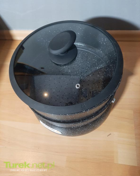 Aluminiowa szyjka o pojemności 11 litrów - to rozwiązanie 3 w 1 idealne na Twoje ulubione potrawy. Dzięki powłoce nieprzywierającej Greblon C3 gotowanie staje się przyjemnością. Uchwyty Soft Touch, pokrywa ze szkła hartowanego i możliwość używania na indukcji to tylko niektóre z zalet tego produktu. Wyjątkowy przyrząd kuchenny Kamberg, który pozwoli Ci eksperymentować z różnymi technikami kulinarnymi. Gotuj, zapiekaj i paruj w jednym naczyniu! Wielofunkcyjność i solidne wykonanie to atuty, które doceni każdy kucharz amator. Zaskocz swoich gości niesamowitymi posiłkami przygotowywanymi w uniwersalnej szyjce Kamberg. Dzięki możliwości używania na wszystkich palnikach, w tym indukcyjnych, Twoje kulinarne możliwości będą nieograniczone. Odkryj świat smaków z Kambergiem Produkt powystawowy. Faktyczny stan przedmiotu przedstawiony od 2zdjecia. Podniszczony kartonik. Mniejszy garnek delikatnie wgnieciony - przez co pokrywka dokładnie na niego nie nachodzi- widoczne na zdjęciach! 142/25