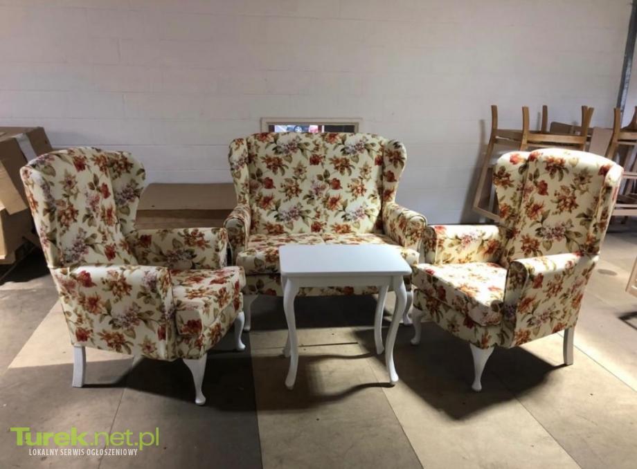 Witam serdecznie! Mam na sprzedaż nowy komplet wypoczynkowy w kwiaty, utrzymany w klasycznym stylu angielskim. W skład zestawu wchodzą: 2 wygodne, stylowe fotele elegancka sofka (2-osobowa) stolik kawowy o klasycznym designie Całość prezentuje się bardzo efektownie i przytulnie — idealnie sprawdzi się w salonie, ogrodzie zimowym, kawiarni lub stylowej przestrzeni wypoczynkowej. Meble są nowe, nieużywane i gotowe do użytku od razu. Cena za komplet: 2 550 zł Więcej informacji i dodatkowe zdjęcia chętnie prześlę w wiadomości prywatnej.