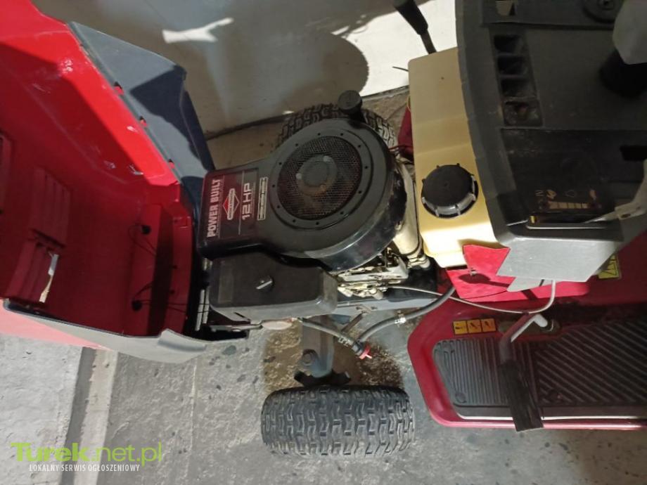 Sprzedam traktorek kosiarka bez Kosiska w całości lub na części. Silnik, skrzynia manualna, maska,kosz koła belka przednia błotnik tylny fotel nie odpisuje.