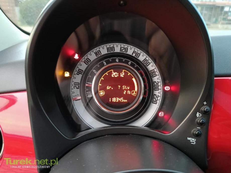 Cena 25700 PLN Kontakt 882-445-551 Woj wielkopolskie 62-704 Na sprzedaż Fiat 500 Lift z 2016 roku z silnikiem benzynowym 1.2 o mocy 69 koni . Auto dotychczas przejechało 118340 km . Świetne miejskie auto z funkcją City wspomagania układu kierowniczego. Do auta są dwa kluczyki . Wyposażenie: -Automatyczna klimatyzacja -dotykowe radio -Bluetooth - dach panoramiczny - el.szyby przód / podgrzewane lusterka - alufelgi (czujniki ciśnienia w oponach)