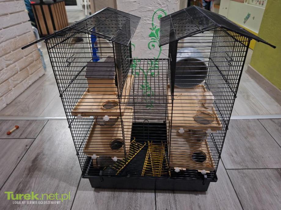 Sprzedam klatke dla chomika,malego gryzonia,dwupietrowa,w srodku drabinki,domek,kolowrotek,dodam trociny,karme,miseczki,odbior Turek