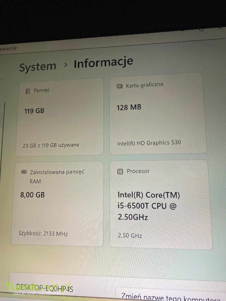 Sprzedam zestaw widoczny na zdjęciu HP Elitedesk 800 G2 mini 8GB RAM z dyskiem 128 GB, Intel Core i5-6500T CPU 2.50GHz. Ze świeżo zainstalowanym systemem Windows 11 Pro (dożywotnia licencja) Do zestawu monitor LG 24 cale oraz klawiatura z myszką. Mogę sprzedać sam komputer.