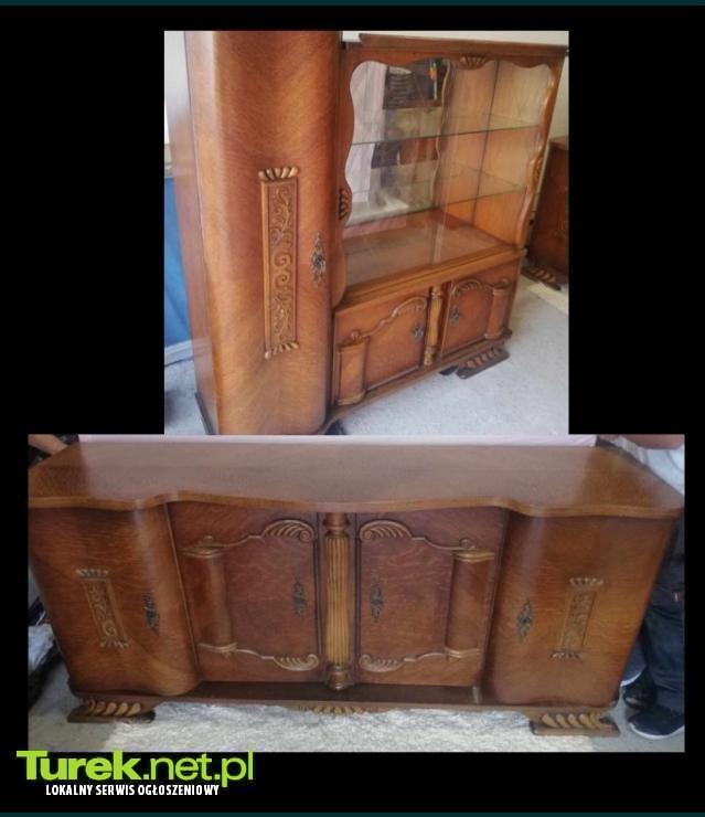 Sprzedam stare zabytkowe dębowe meble. Stan bardzo dobry. Staranne wykończenia rzeźbione. Meble są ciężkie, porządne. Wymiary komoda dł. 2 metry, wys. 90cm, szer. 52cm. Witryna dł. 140cm, szer. 40cm, wys. 152cm.