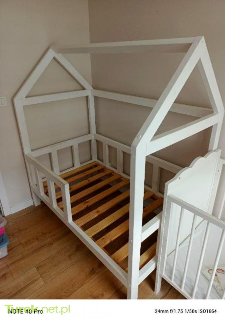 Sprzedam łóżko "domek" o wymiarach całkowitych 148x88 wysokość w najwyższym punkcie 162cm. Materac dodaję gratis.